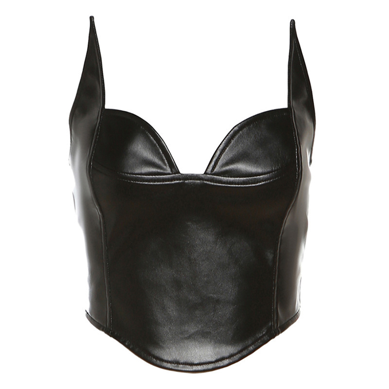 Uveng 2024 Summer New Women's Fashion Sexy V-Collared Body-Dexed PU Leather Small Vest