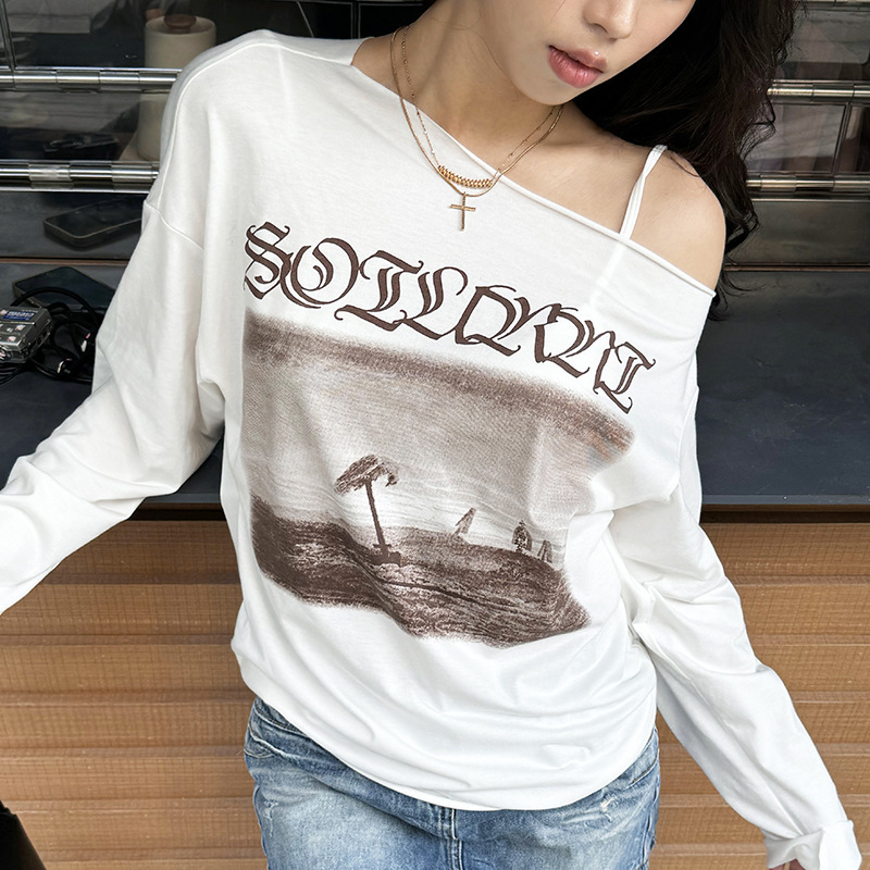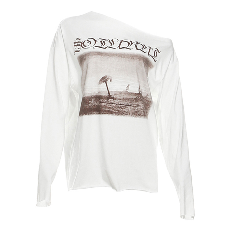 Uveng 2024 Summer New Women's Fashion Trend Hop Print Loose Long-Sleeved And Shoulder T-Shirt