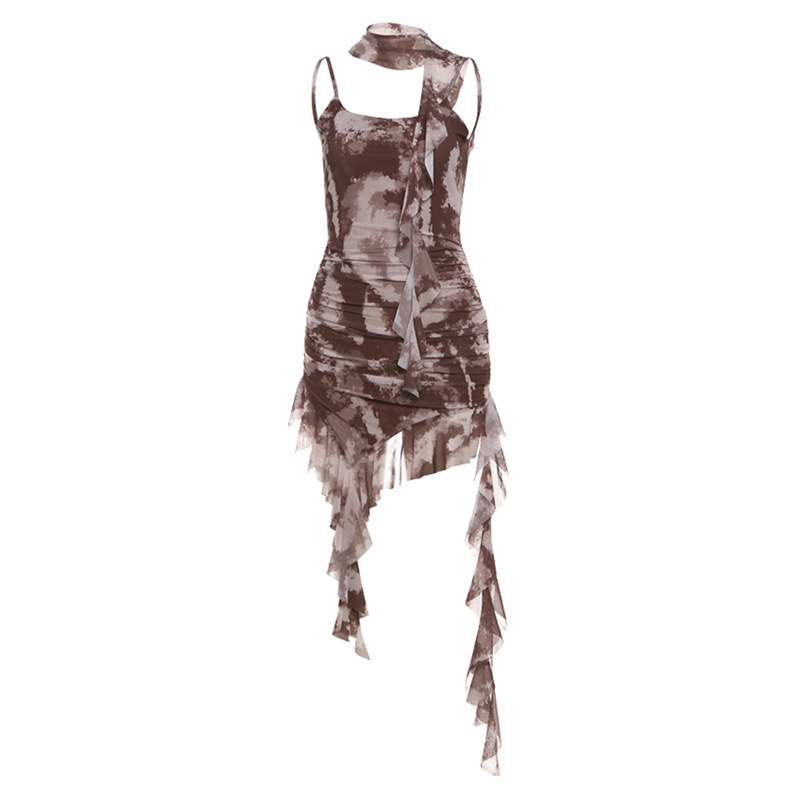 Uveng 2024 Summer New Women's Street Fashion Sexy Sling High-Waisted Hips Solid Color Dress