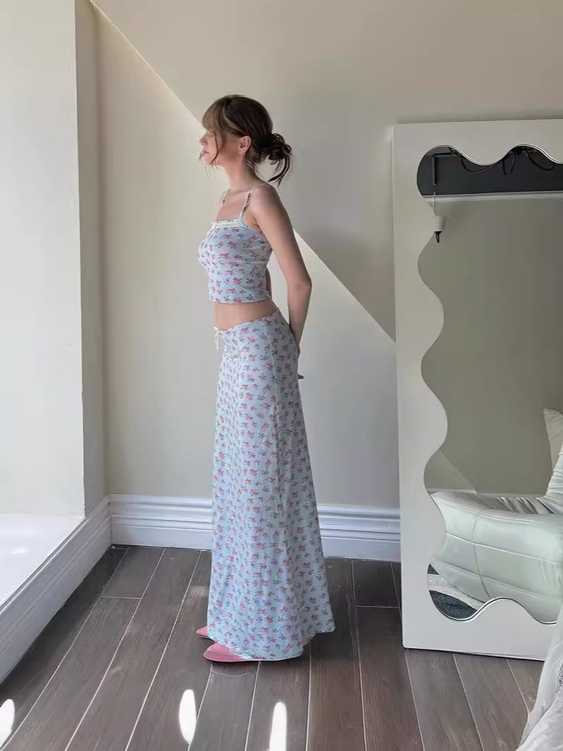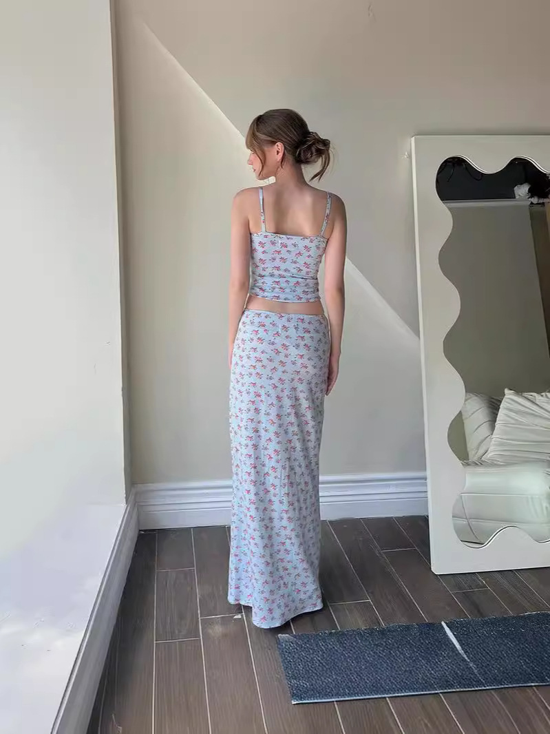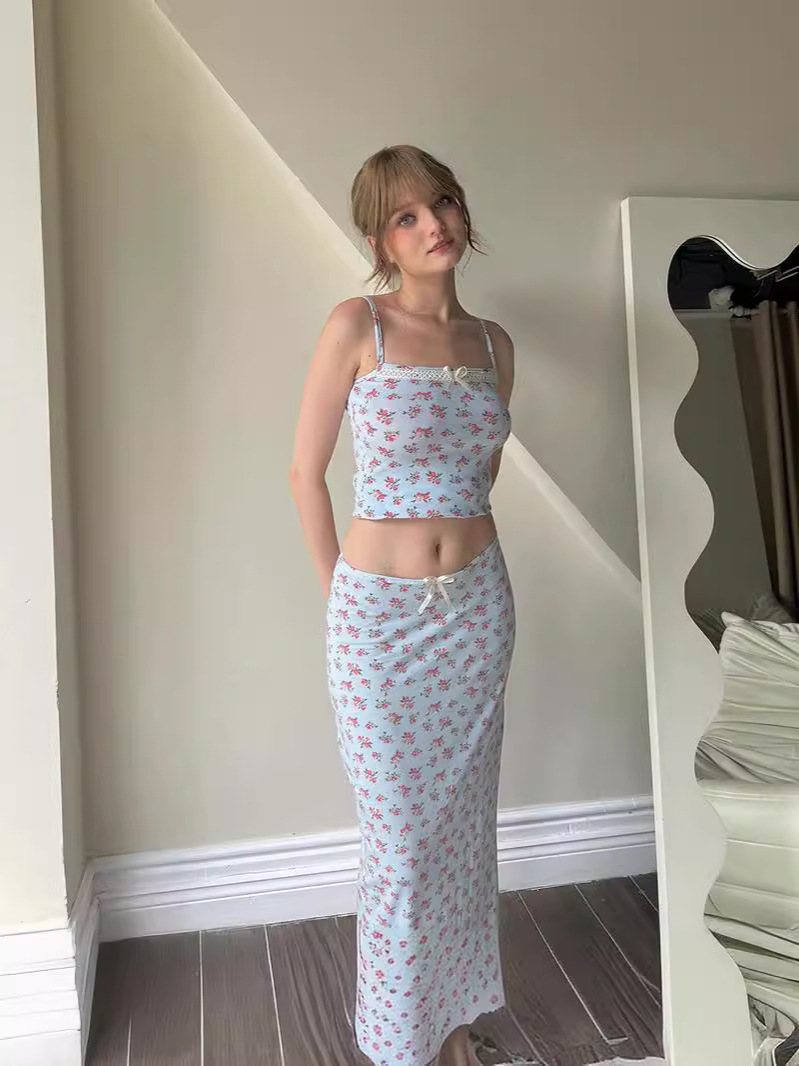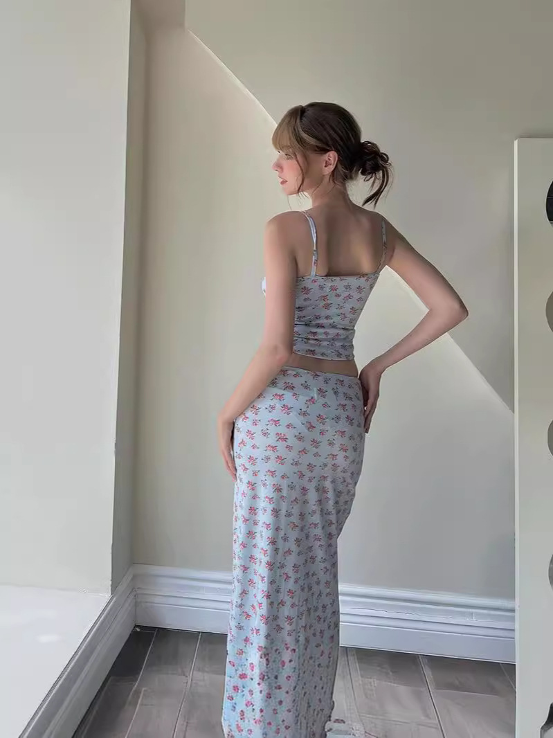 Uveng 2024Ins Fashion Small Fresh Flower Print Sling Small Vest Top Dress Set
