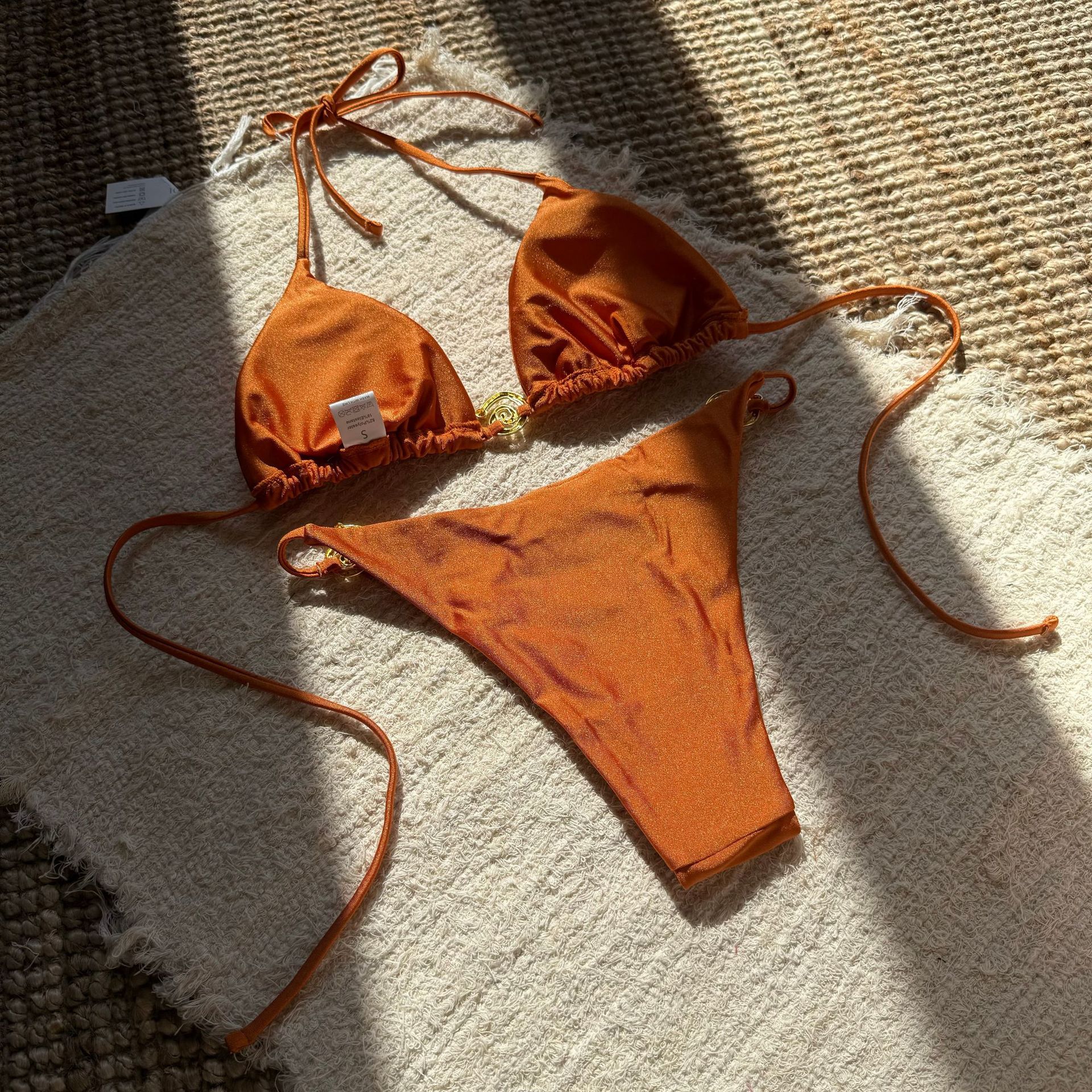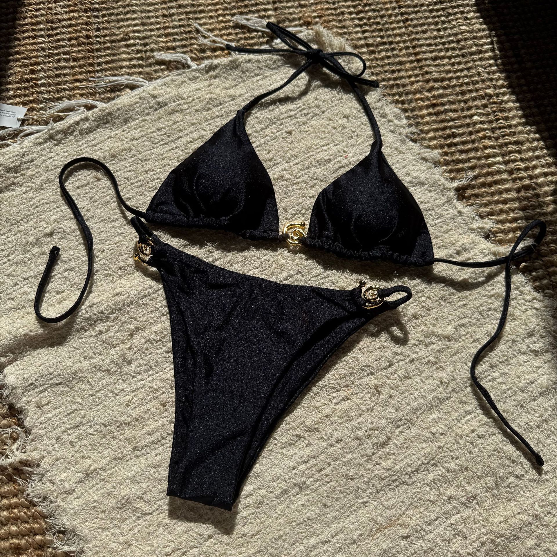 Uveng 2025 New Sexy Nylon With Light Metal Ring With Dew-Back Split Body Swimsuit Bikini