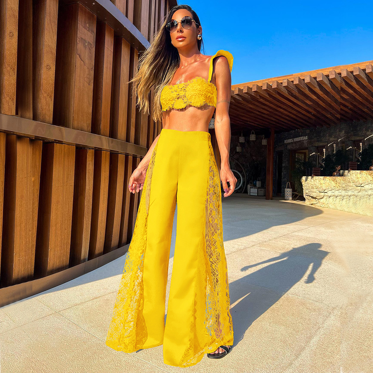 Uveng 2025 New Split Swimsuit Trousers Beach Set Three-Piece Solid Color Sexy