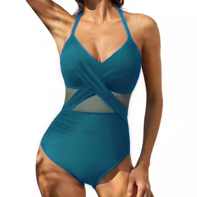 Uveng 2025 New Swimsuit Cross-Style Sexy Bare Back Mesh Splicing Body Bikini Women