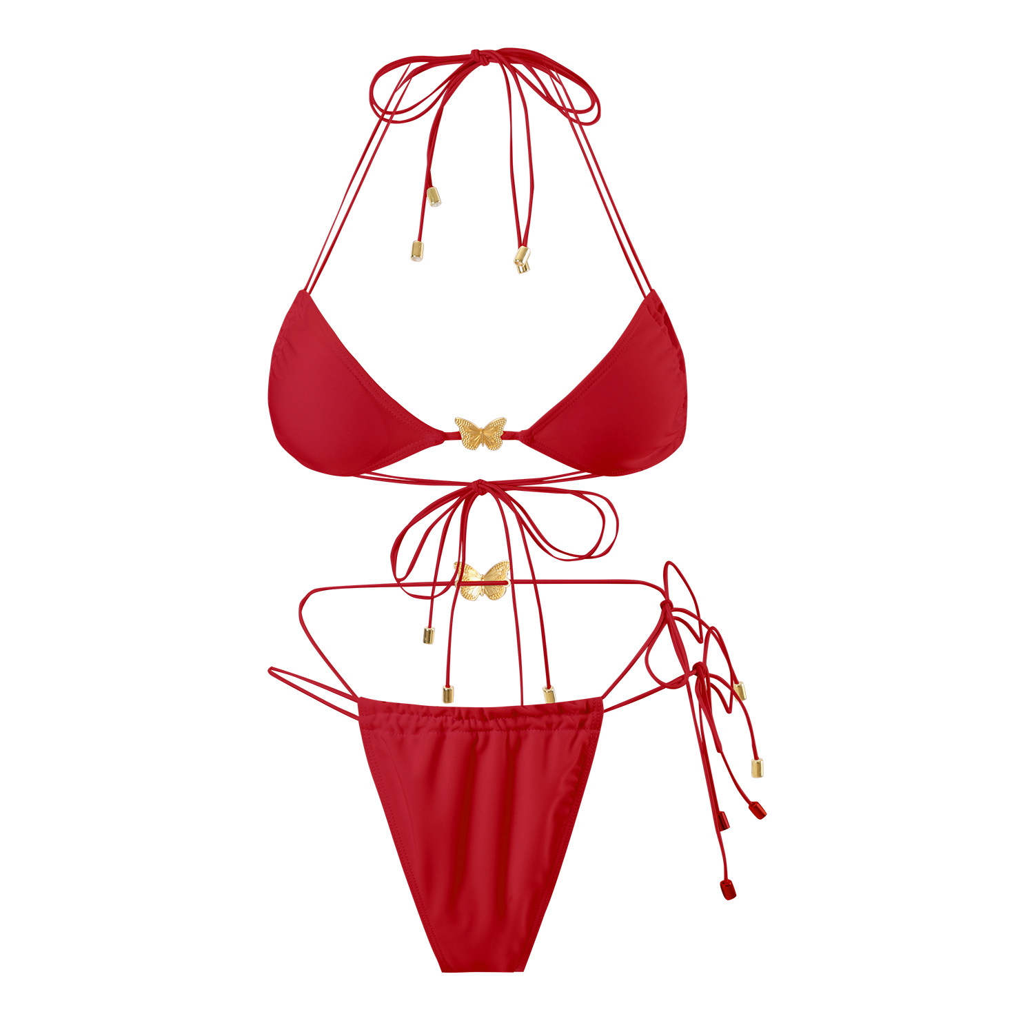Uveng 2025 Solid-Color Elastic Rope Butterfly Ornament Bikini Sexy Split Triangle Strap With Swimsuit Woman