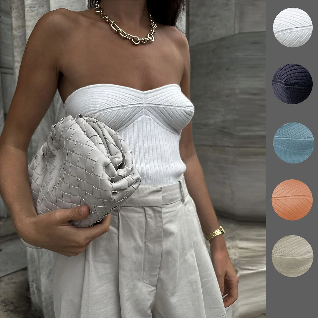 Uveng And Summer 2025 Explosion Women's Clothing Simple Sexy Breast-Wear Short Top