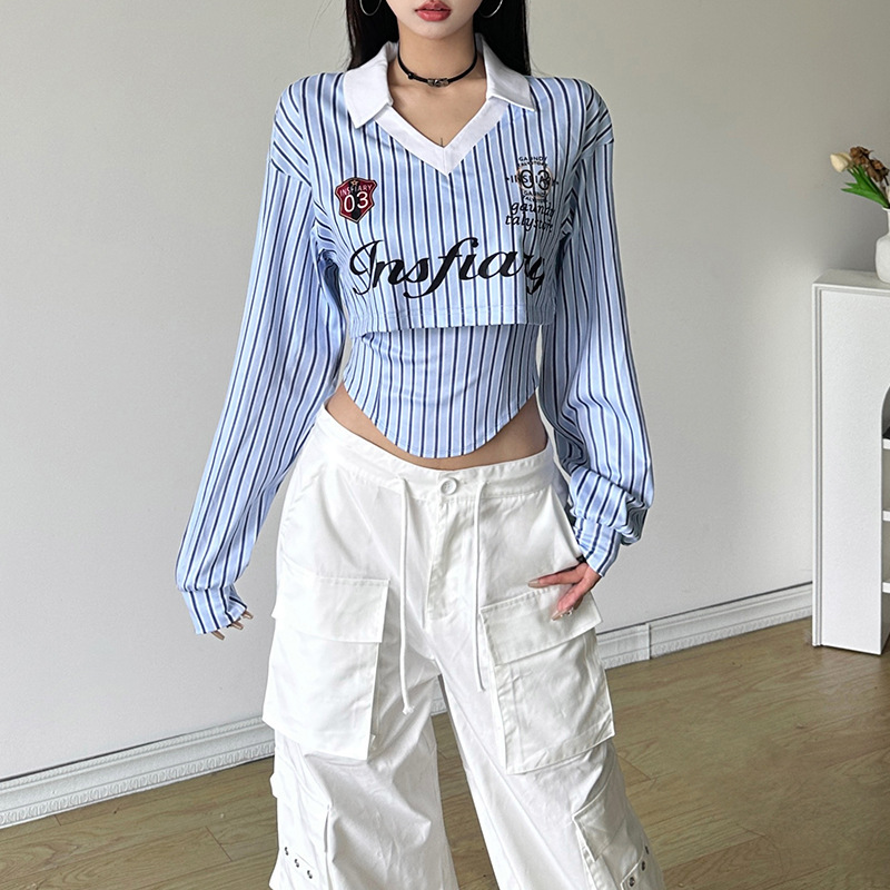 Uveng Autumn 2024 New Women's Solid Color Repair Street Fashion Flip-Flops Long-Sleeved Top Lady