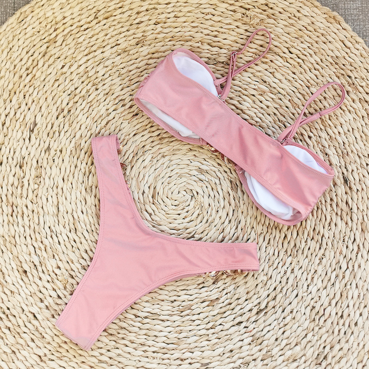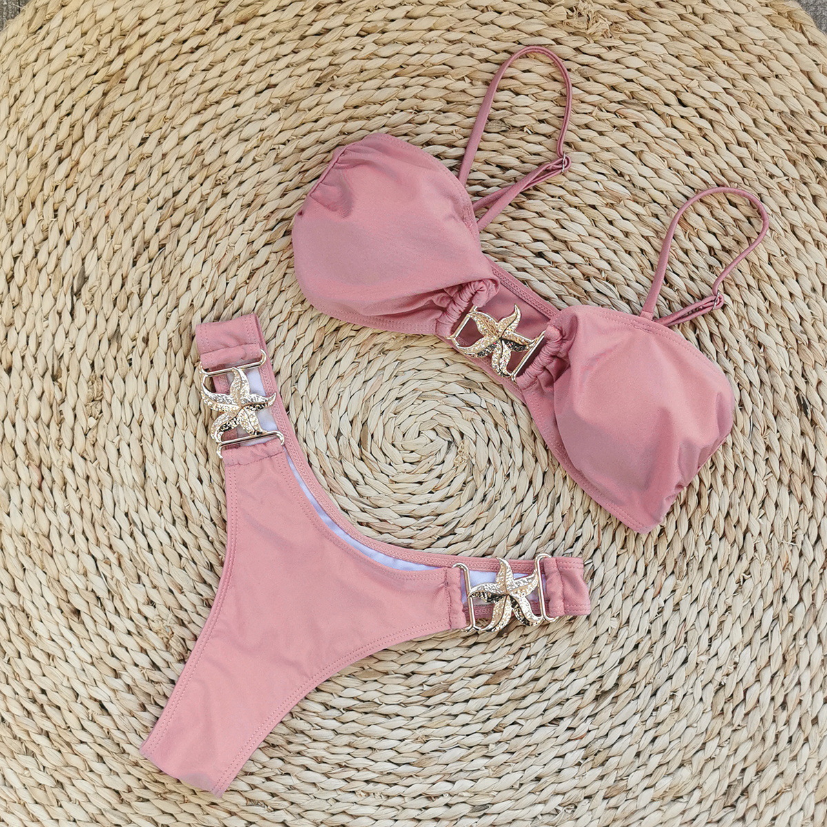 Uveng Bram-Smeared Swimsuit Women's 2025 New High-Fork Bikini Sexy Solid Color Bikini