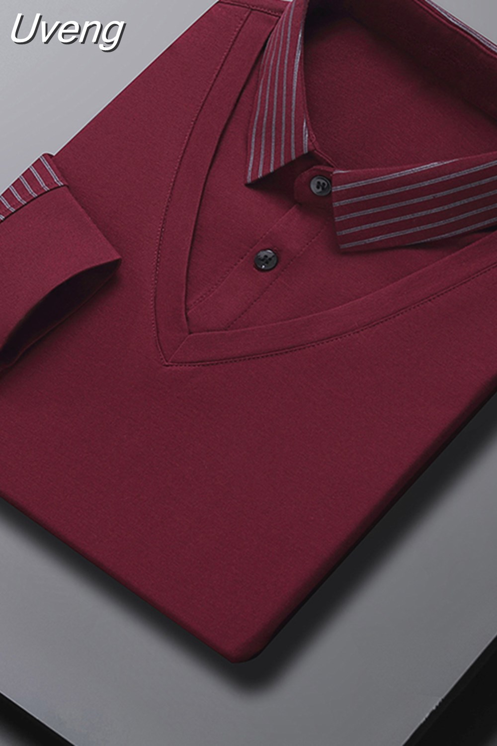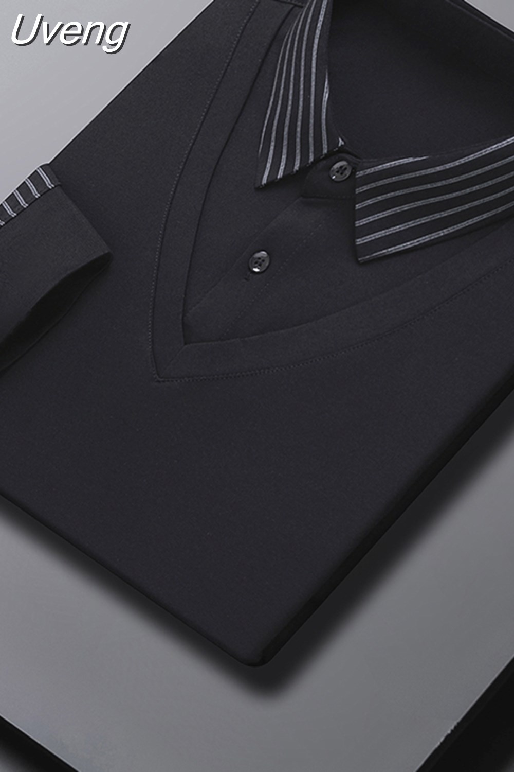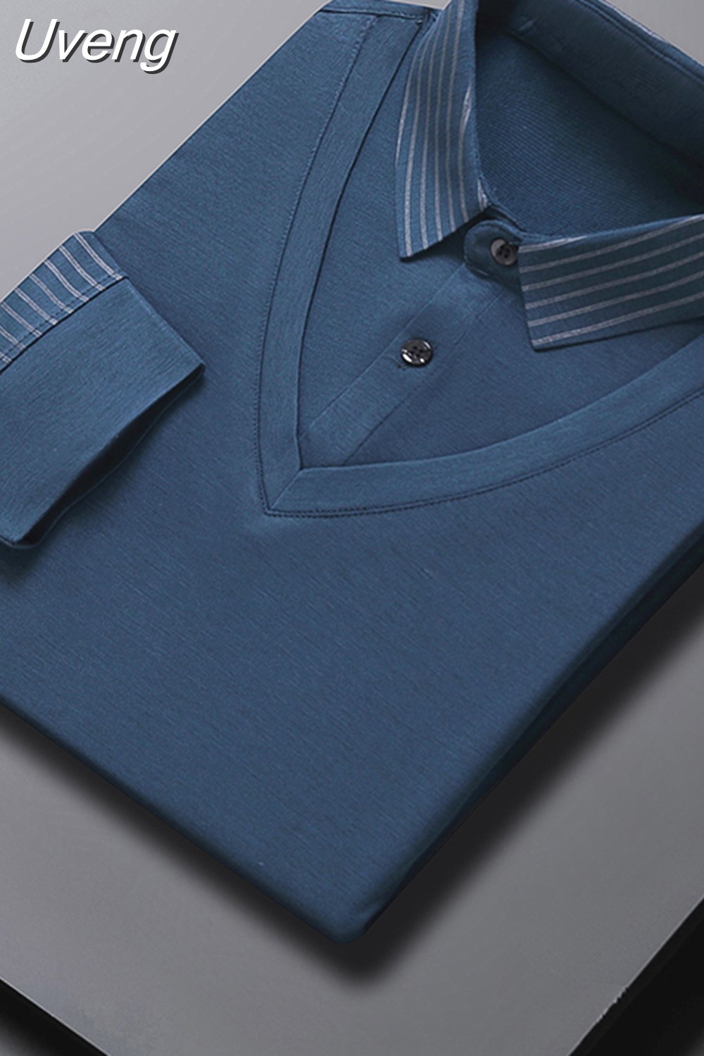 Uveng Colors 2025 New Arrival Men's Casual Classic Polo Shirts Men Business Slim Fit Long Sleeve Polos Brand Men's Clothing 413-0