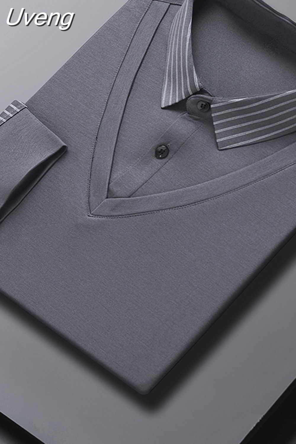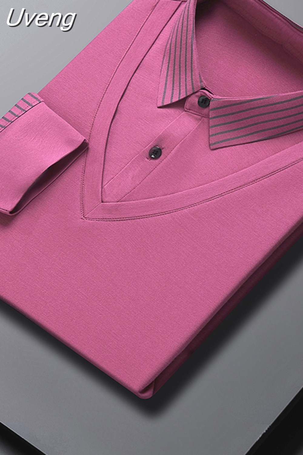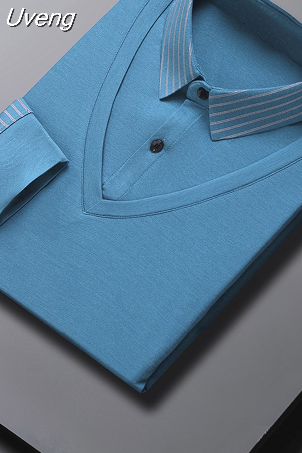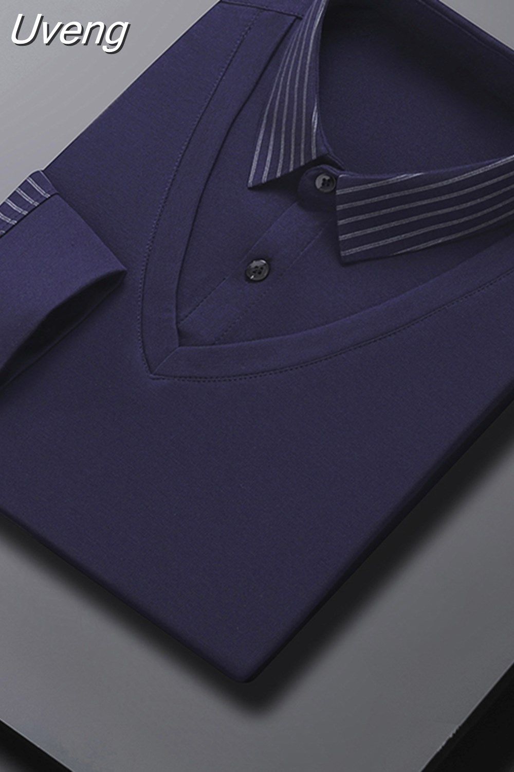 Uveng Colors 2025 New Arrival Men's Casual Classic Polo Shirts Men Business Slim Fit Long Sleeve Polos Brand Men's Clothing 413-0