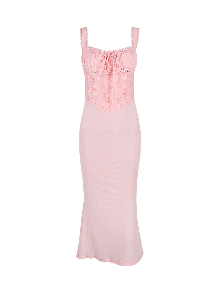 Uveng Dopamine Wears Hottie Sling Pink Dress Female Feeld Back To The Long Dress Dress Of The Fish Tail