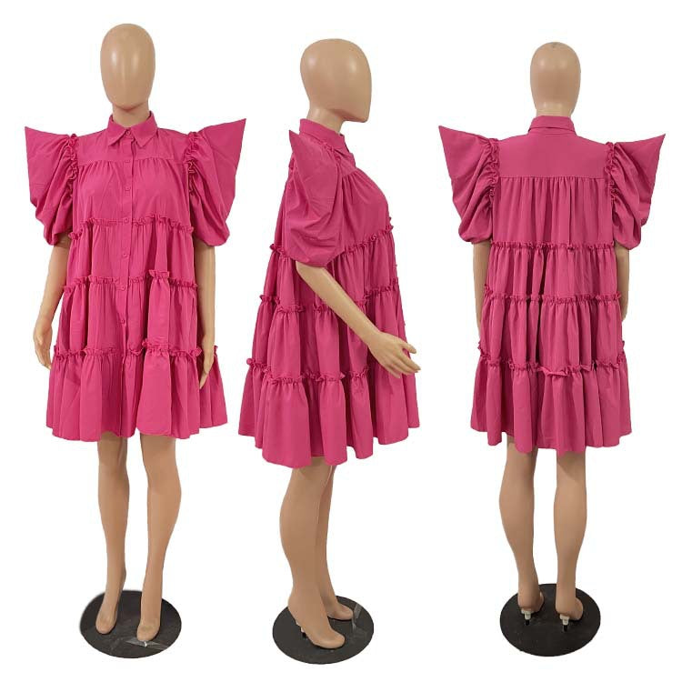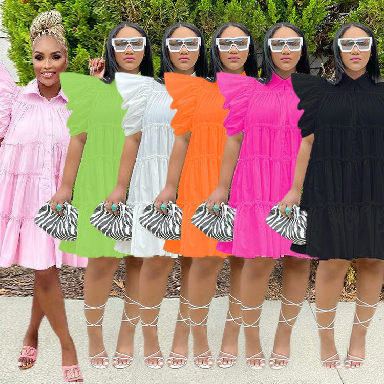 Oversized Dress High Waist Retro Pleated Puff Sleeve Loose Women's Shirt