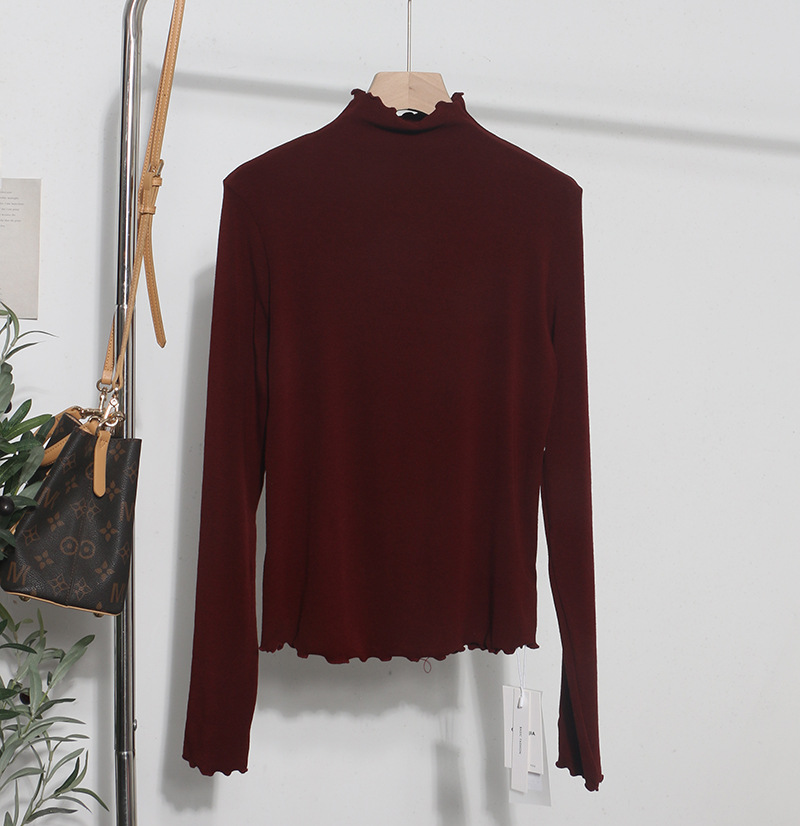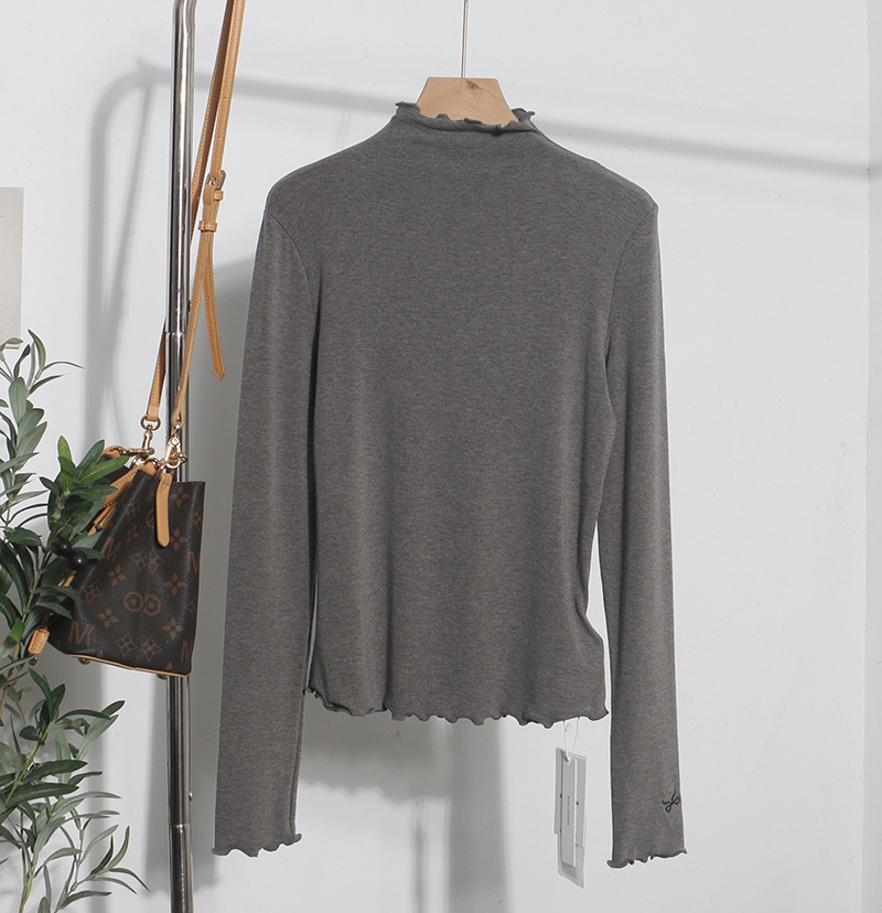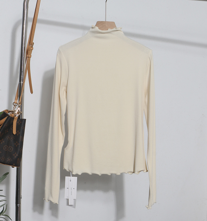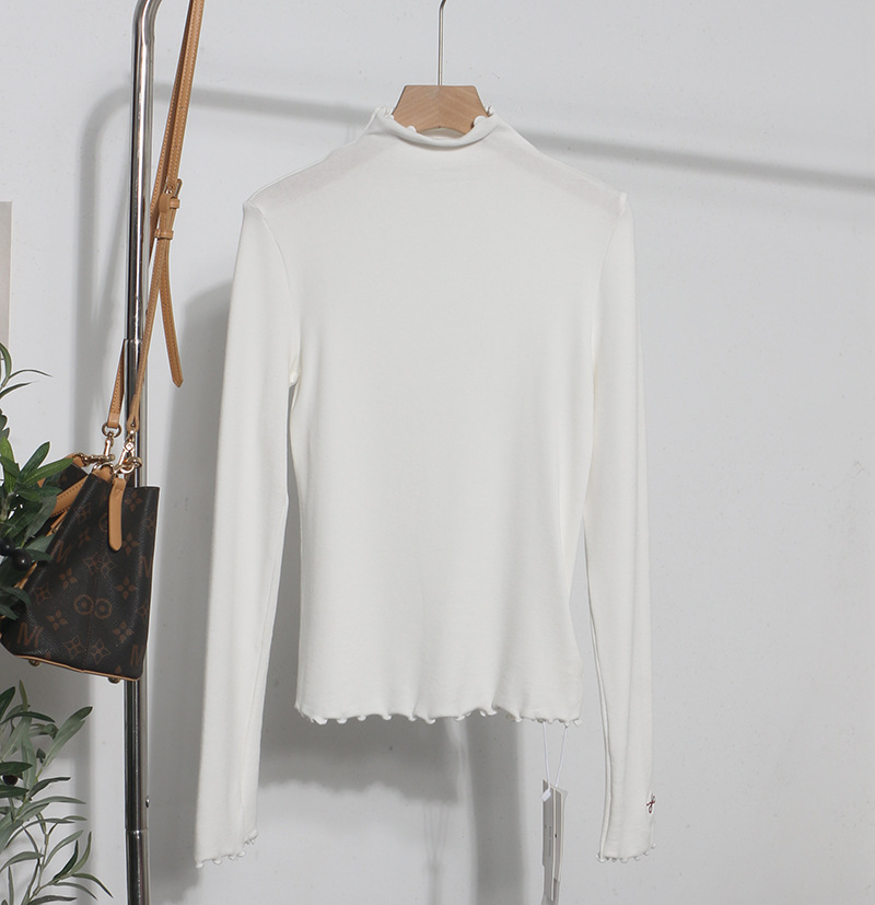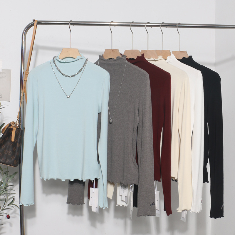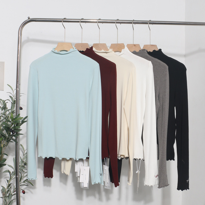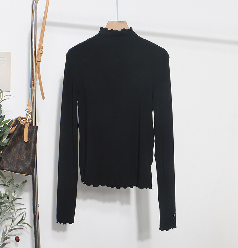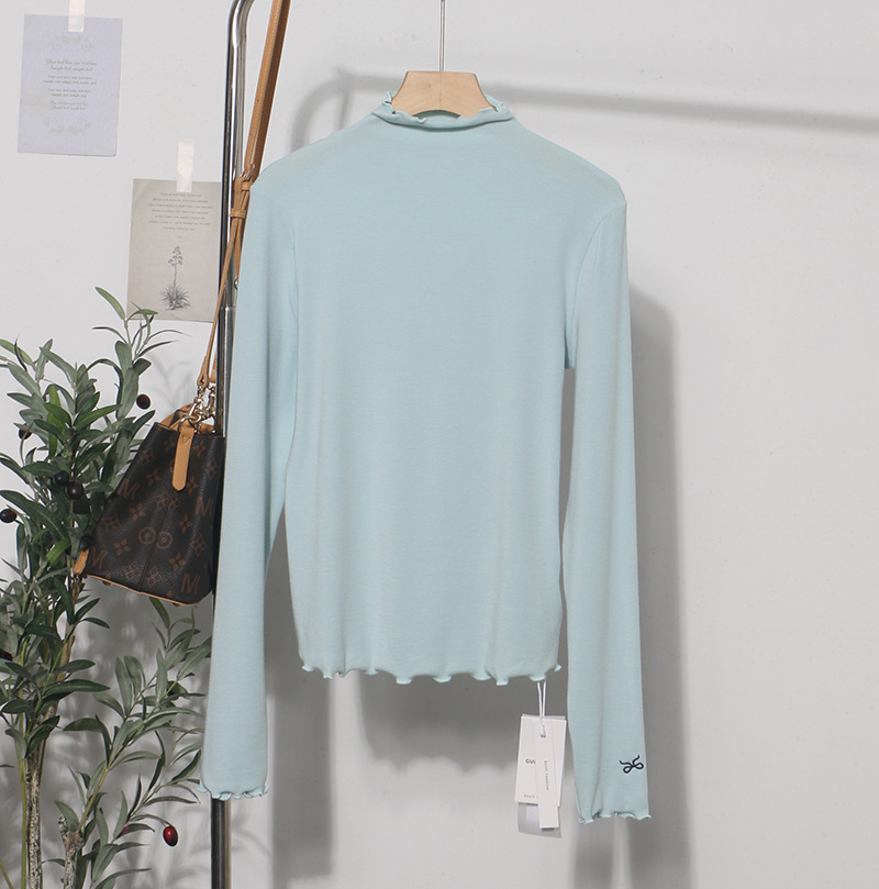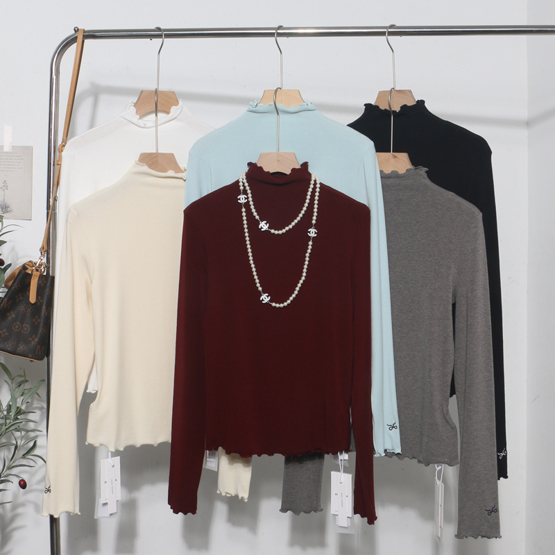 Uveng Half High-Necked Bottomed Shirt Women's Autumn And Winter New Bow Embroidery Inside The Top Of The Jacket T-Shirt 3187