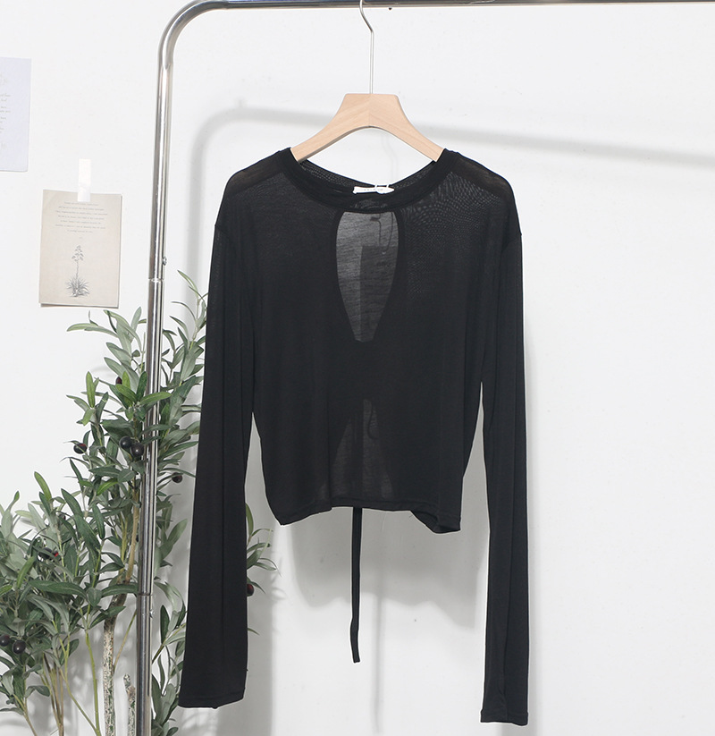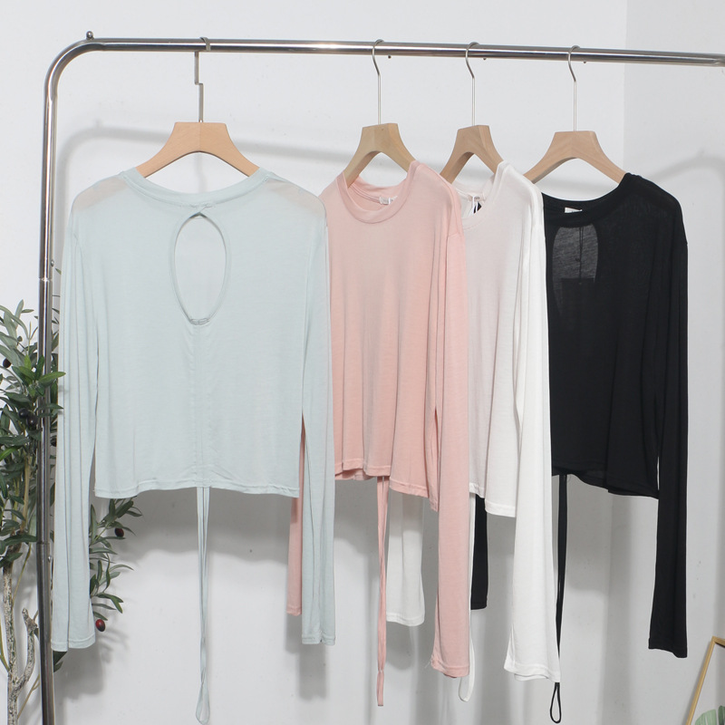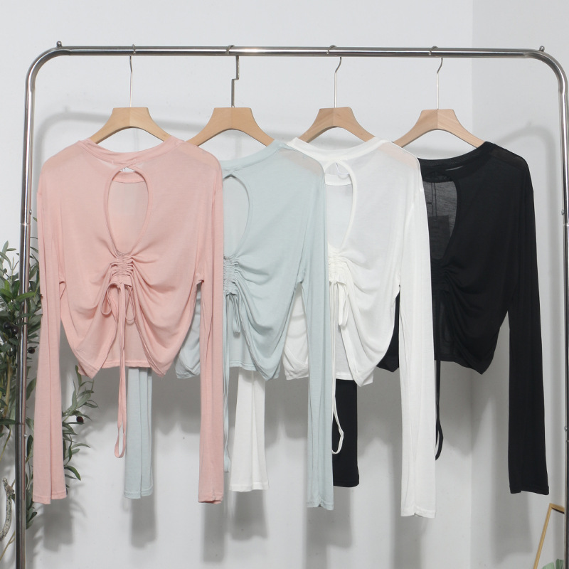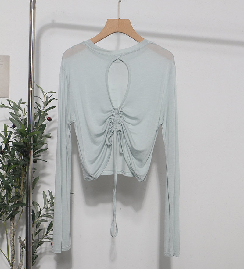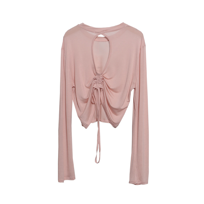 Uveng Han Shied Bare Back Drawstring Blouse Woman Summer Small Casual Wear Thin Hoodie Short-Sleeved T-Shirt 85827