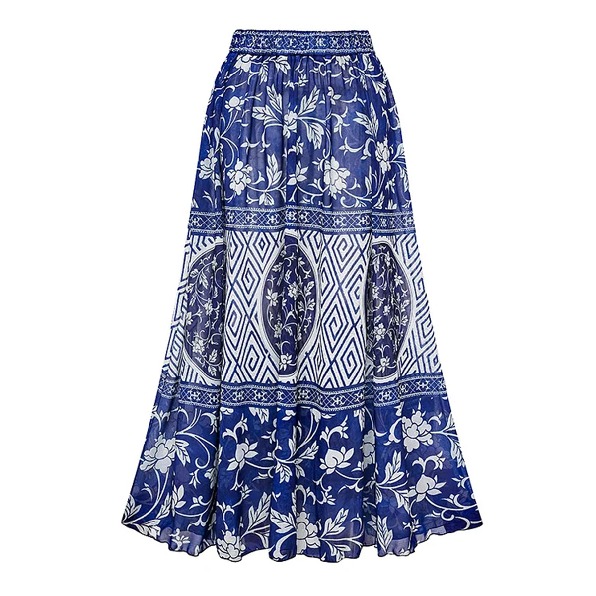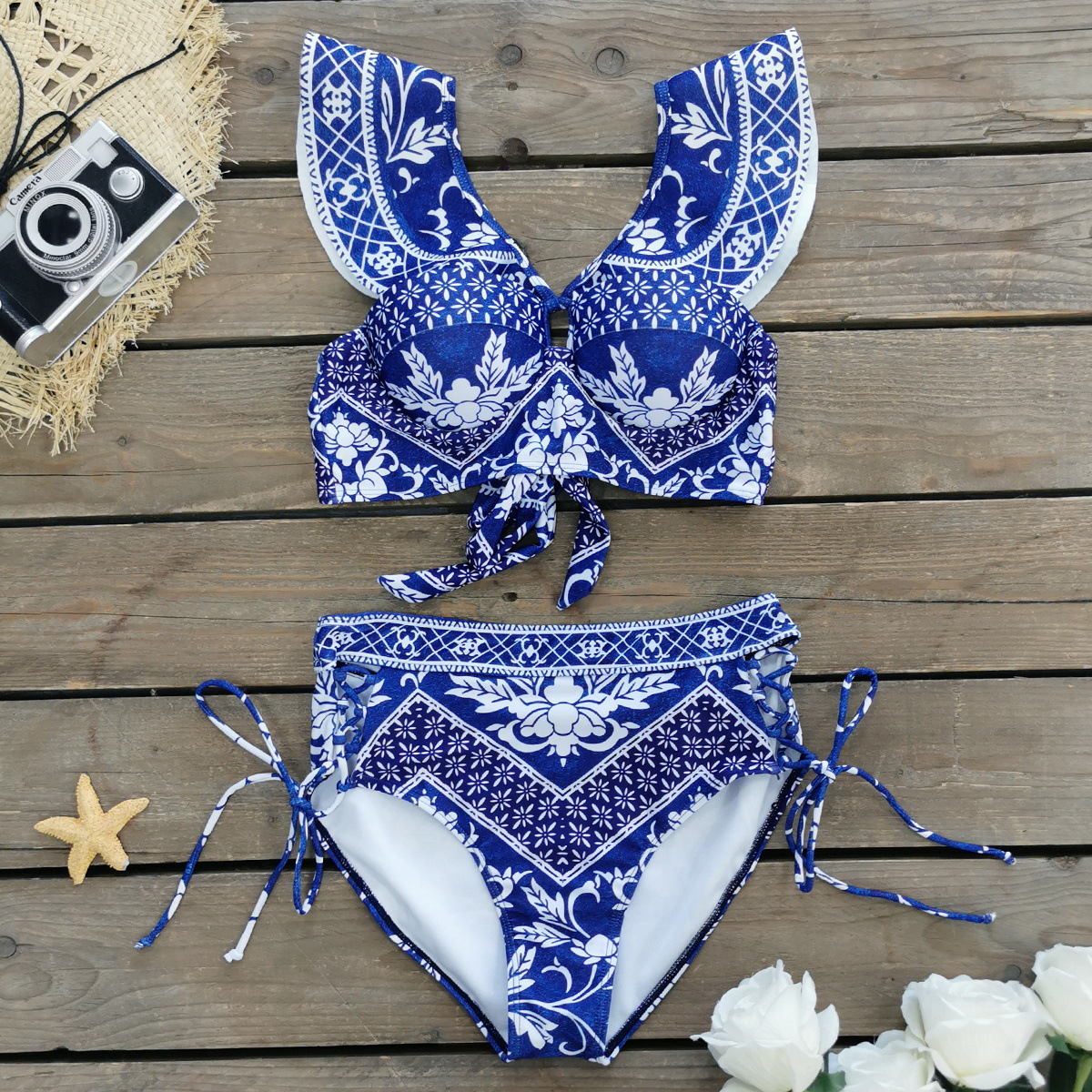 Uveng High-Belt Strap-Print Split Swimsuit Woman 2025 New Bikini Skirt Three-Piece Lotus Edges