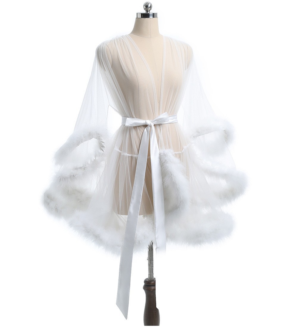 Uveng Iba Large-Size Seduction Lingerie Sexy Haired Bathrobe Export Long-Term
