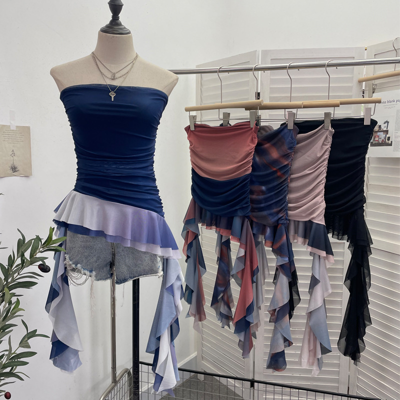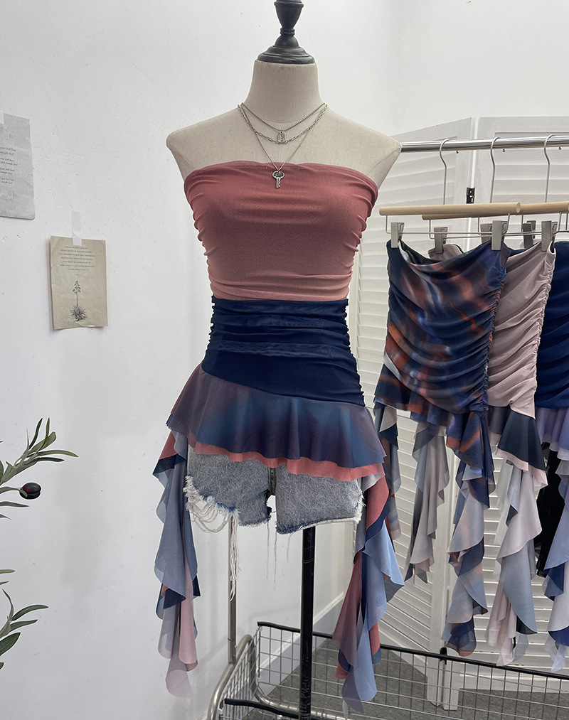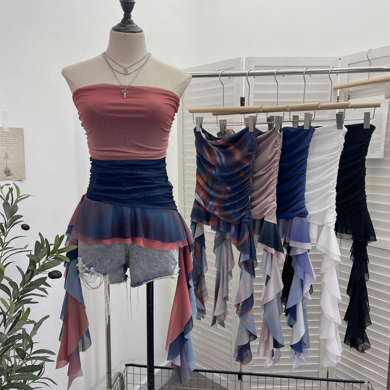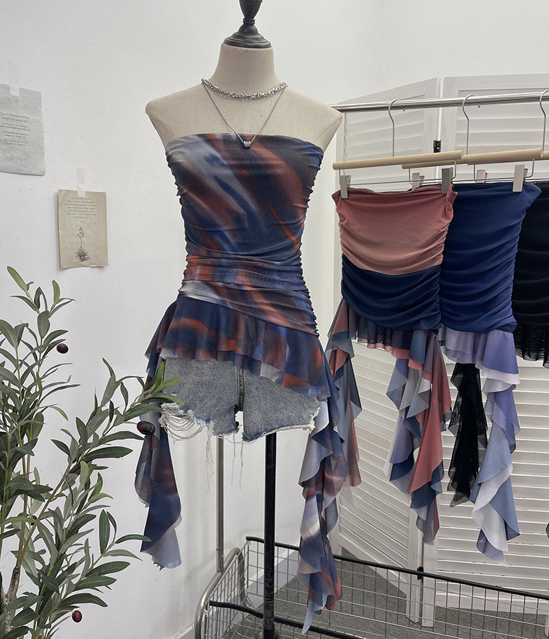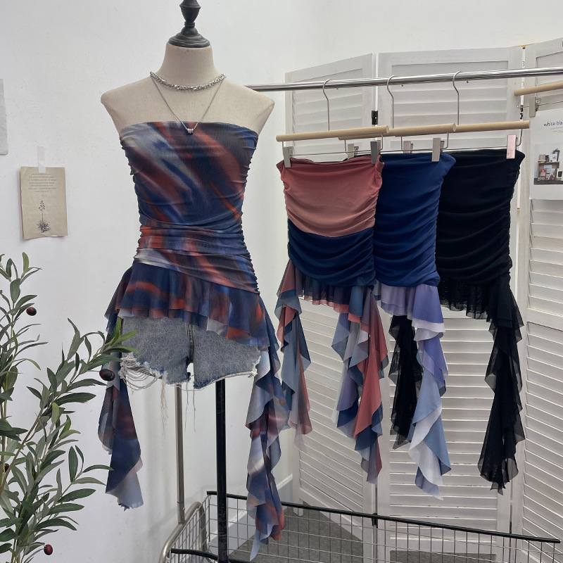 Uveng Irregular Bra Vest Wearing A Gradient Mesh Yarn Leaf Side Ribbon Bottom Sleeveless Top Lady 9931