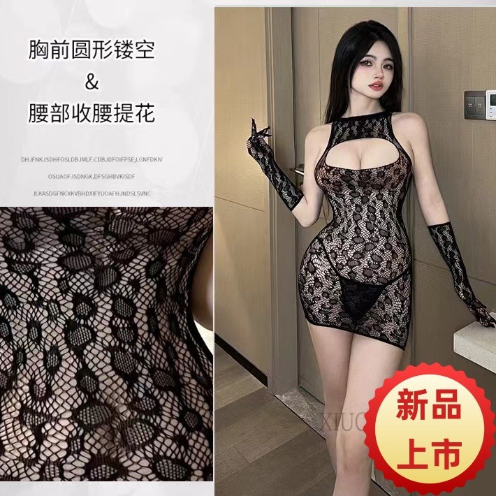 Uveng Large-Size Lingerie Uniform Suit Sexy Fat MM Lace Mesh Yarn Exposed Chest Naked Maid Dress