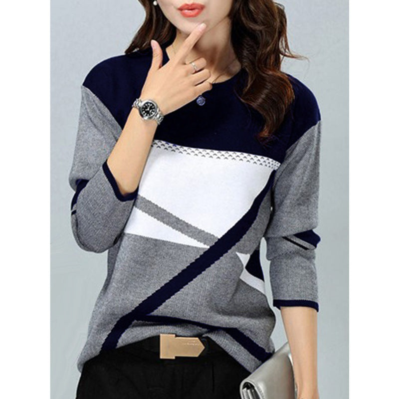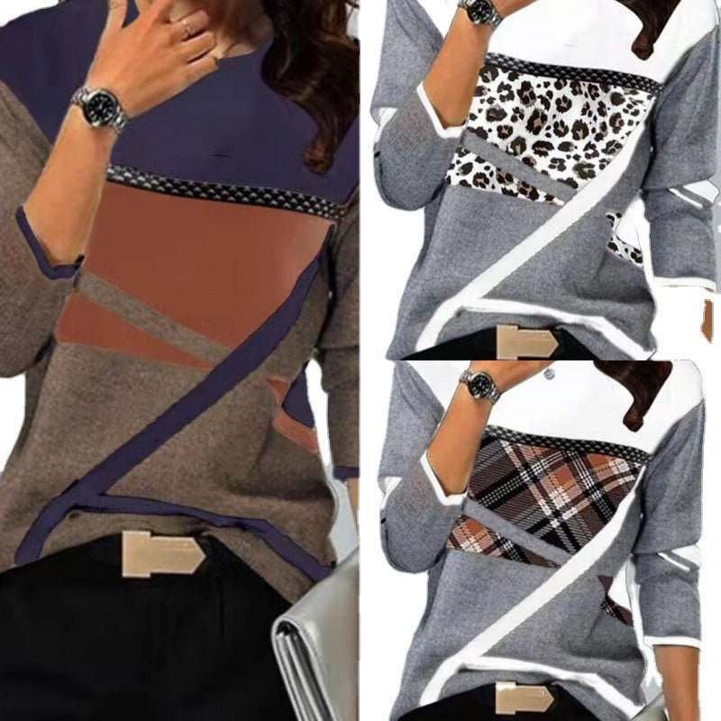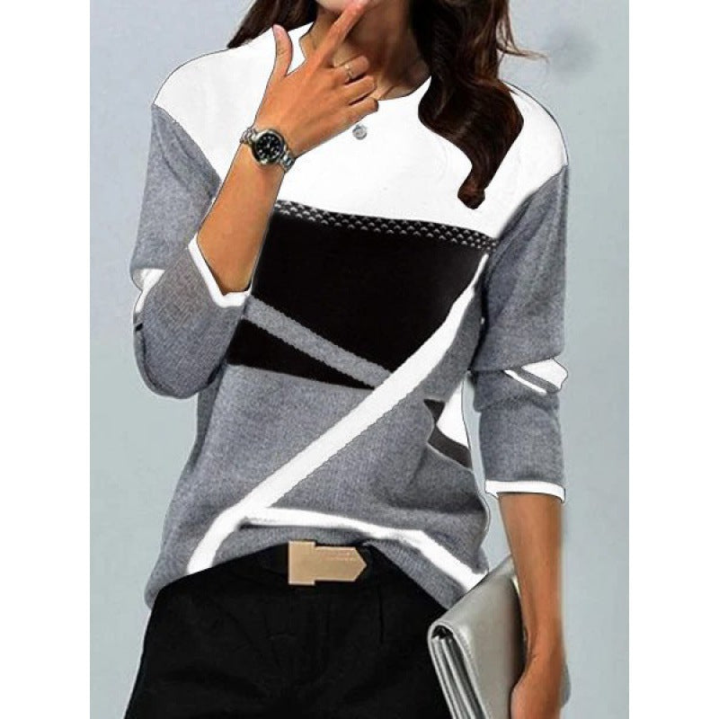 Women's Loose Color Printed Round Neck Long Sleeve T-shirt
