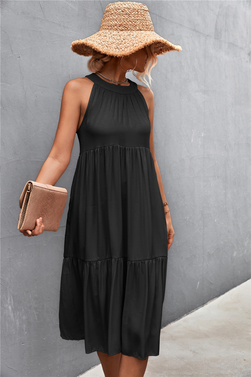 Uveng Loose Splicing Casual Halter Stitching Dress