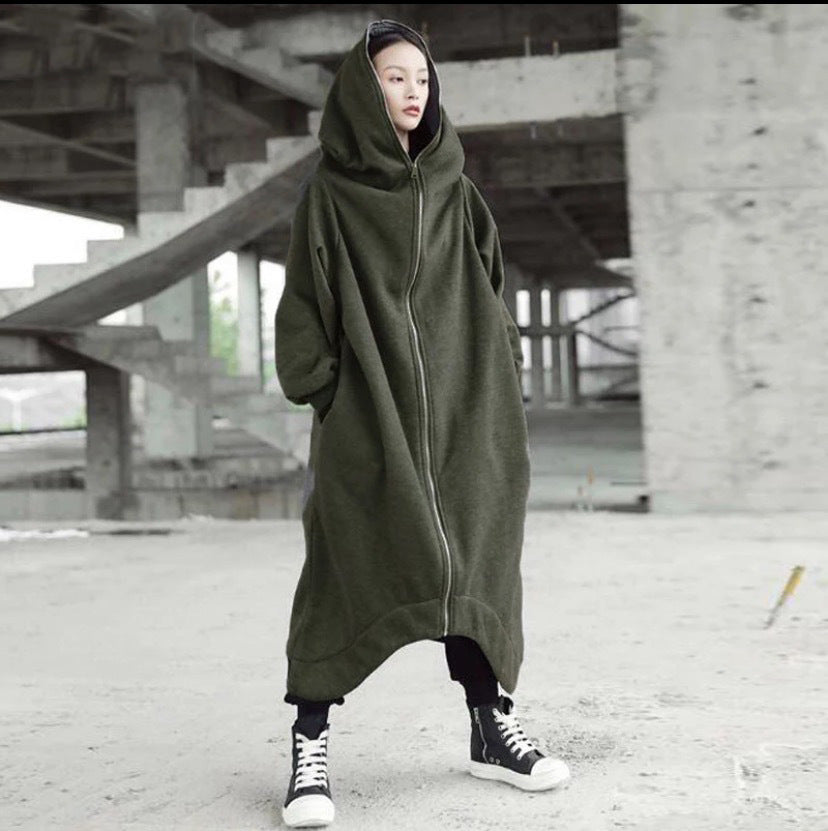Personality Loose Street Zipper Hooded Long Lining Hoodies