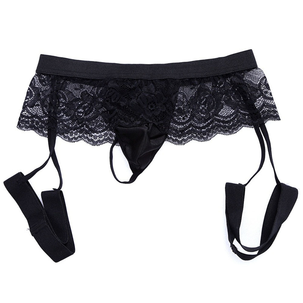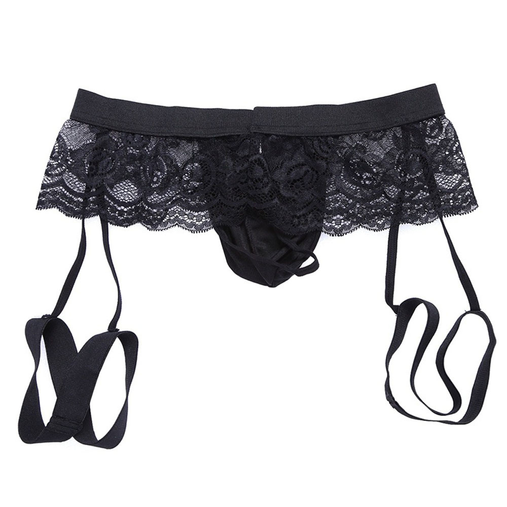 Uveng Mens Sexy Sissy Lace Underwear Thongs Enhance Pouch Bikini Briefs Gay Jock Strap Low Waist Tanga Hombre G-string Homme Underpant