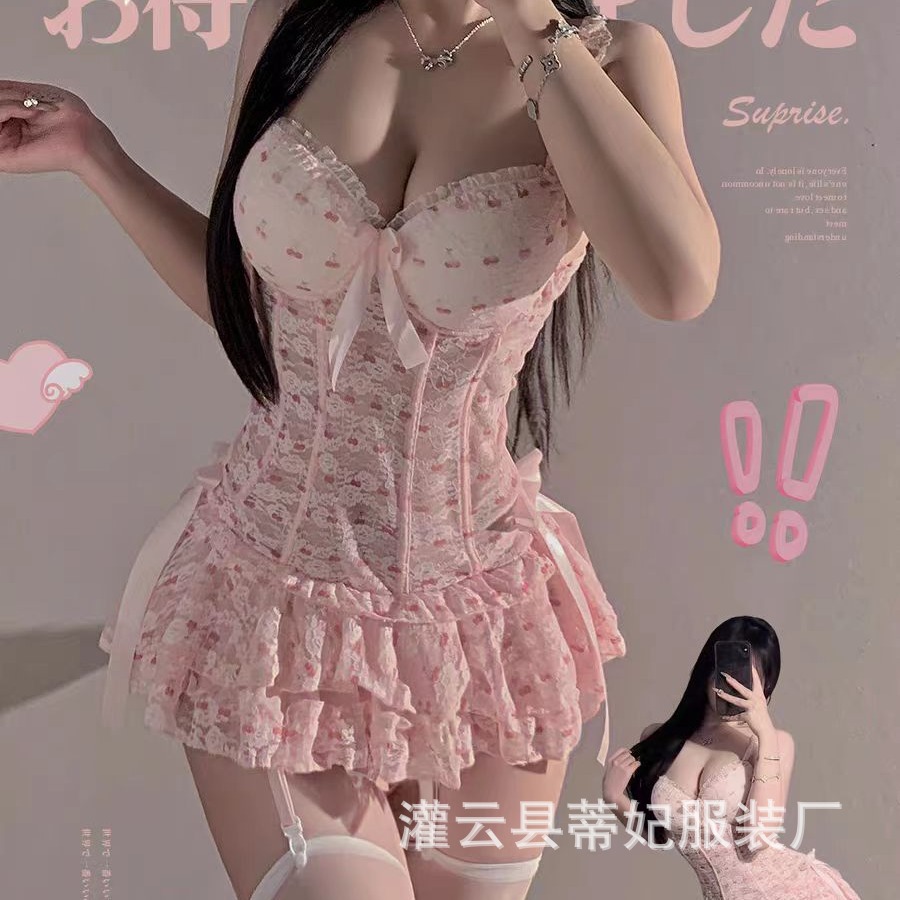 Uveng Night Swear Tifficile Emotional Lingerie Pure Lust Lace Cake Skirt To Seduce Fish Bone Uniform Bed Flirting Together