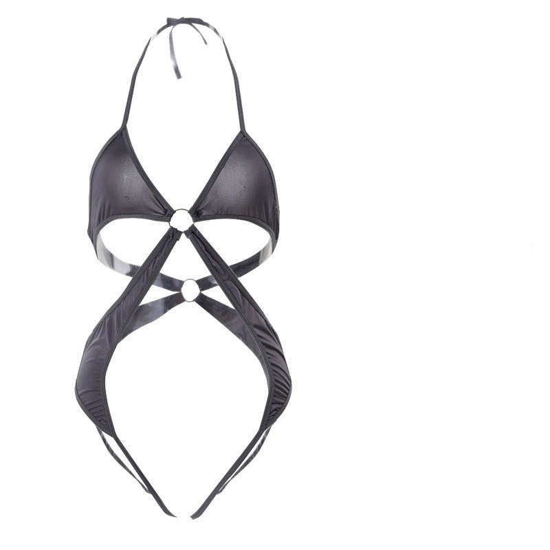 Uveng Night Swearing Lingerie Sexy Tights Small Breast Hanging Neck Cross Strap Open Back Joint Socks Set