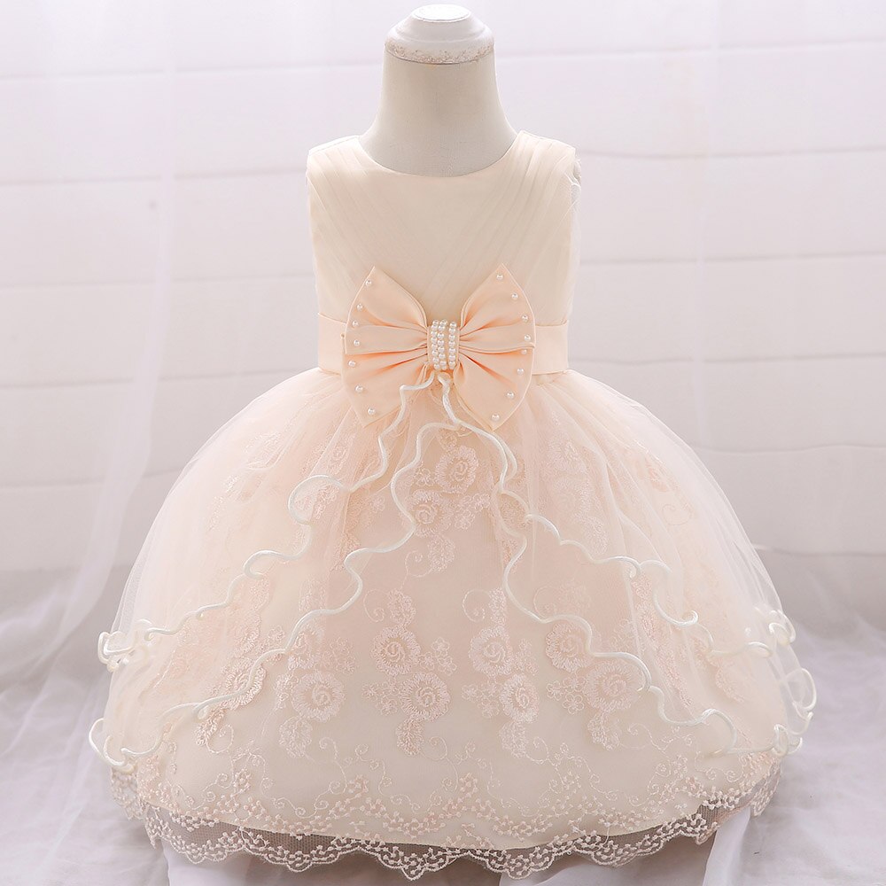 Uveng Pink Lace Baptism Baby Girl Dresses Party Wedding Evening 1st Birthday Kids Prom Princess Toddler Clothes 18 24 Month