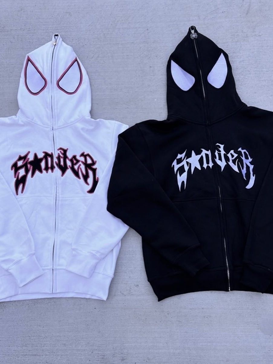 Uveng Puff Print Embroidered Zipper Hooded Street Jackets