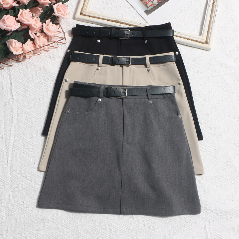 Uveng Real Shooting Gray Short Skirt Women's Summer Leisure High-Waisted Thin A-Body Skirt Anti-Walking Bag Hip Skirt With Belt 8010