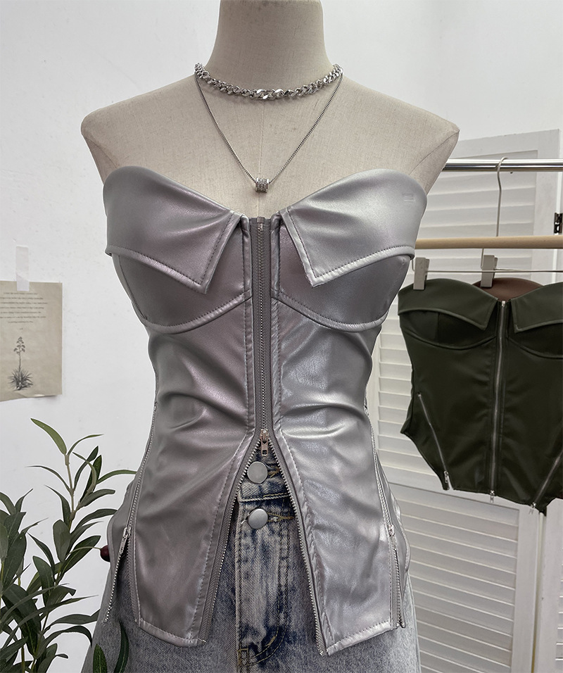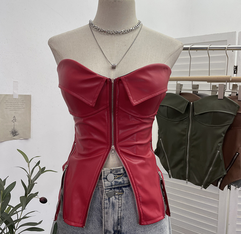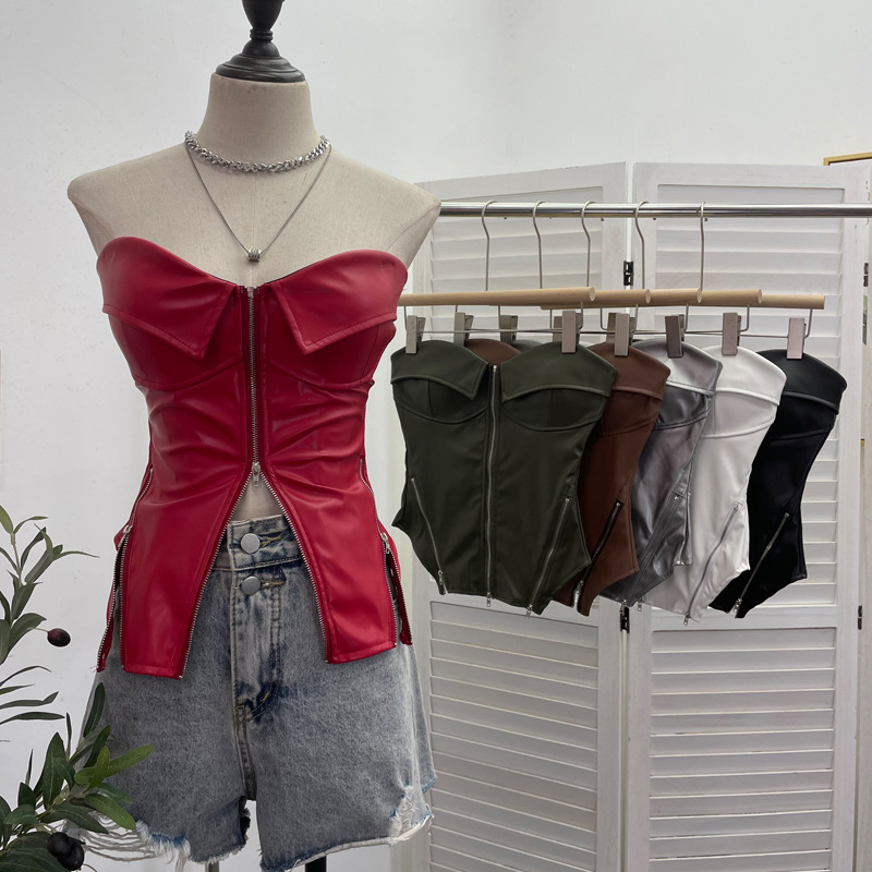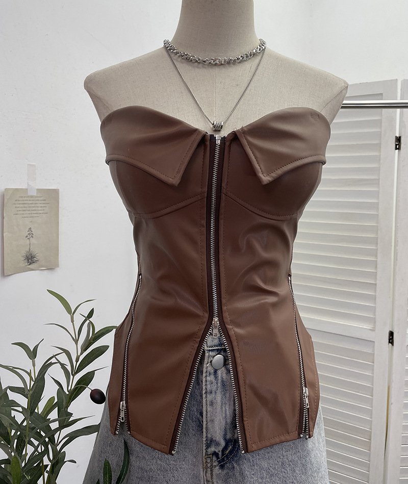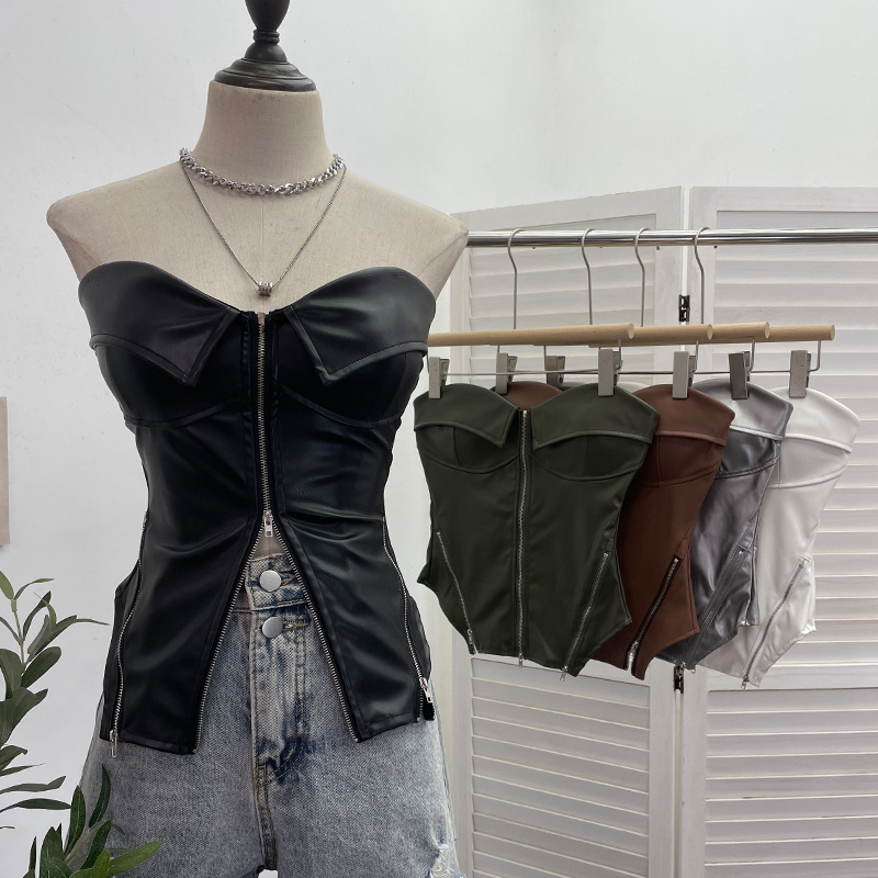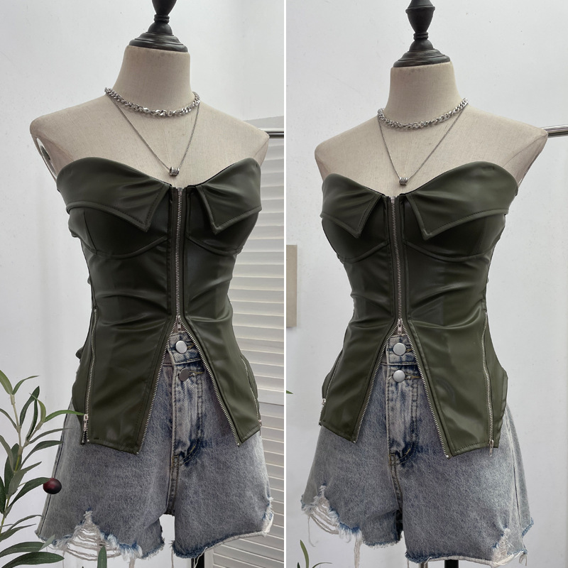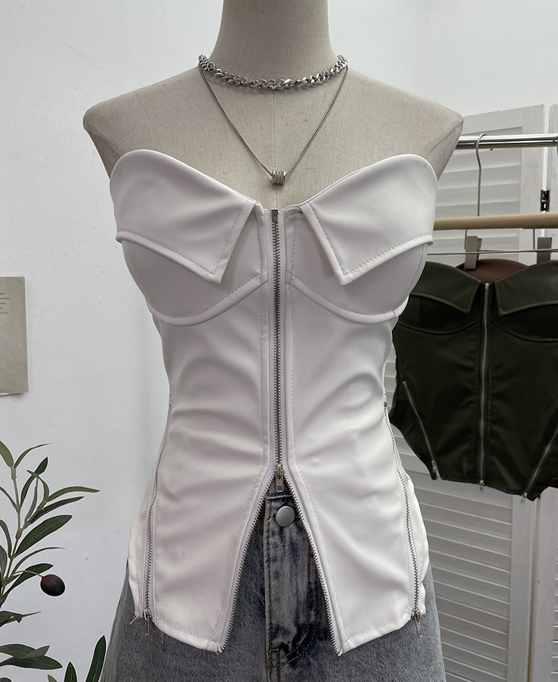 Uveng Real Shooting Hottie Retro Tender With Chest Pad Wrapped Bra Zipper Design Smear Bra Vest Short Sleeveless Top 8968
