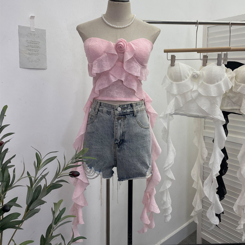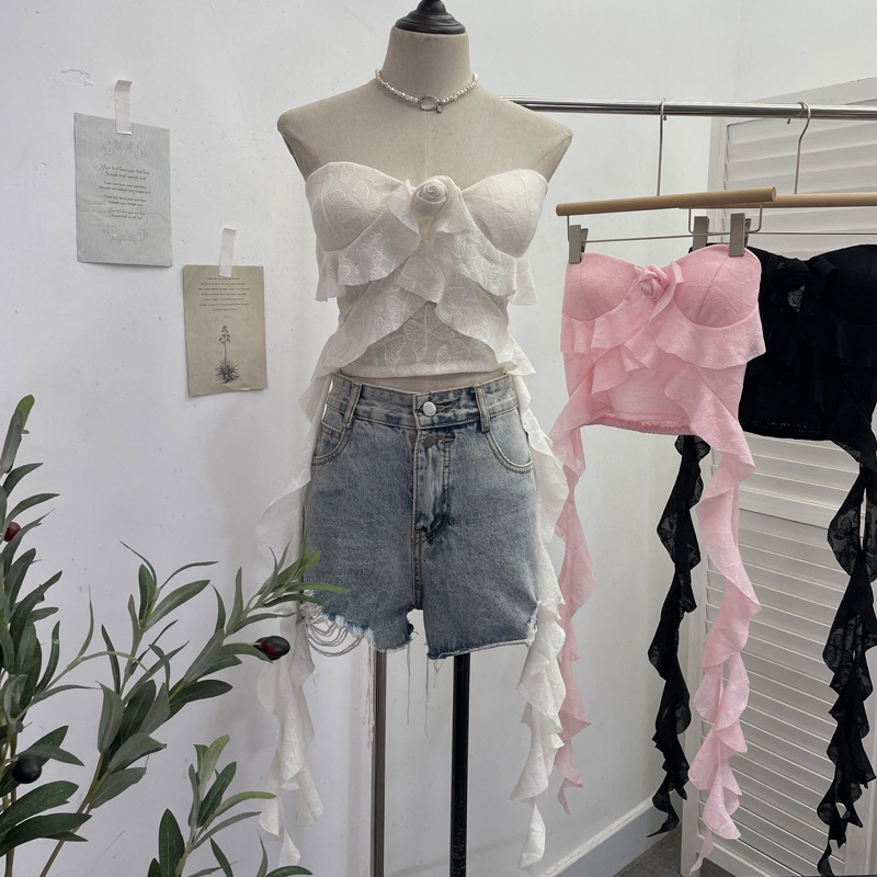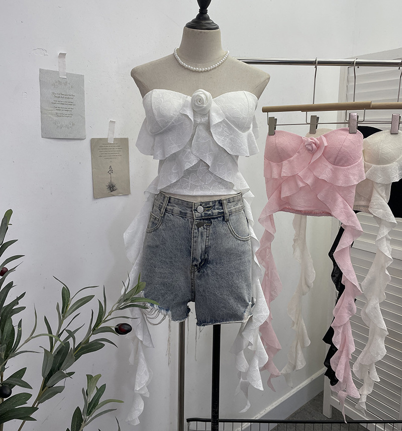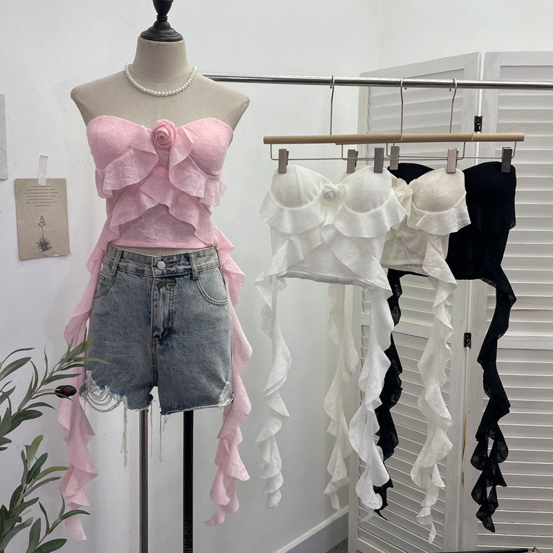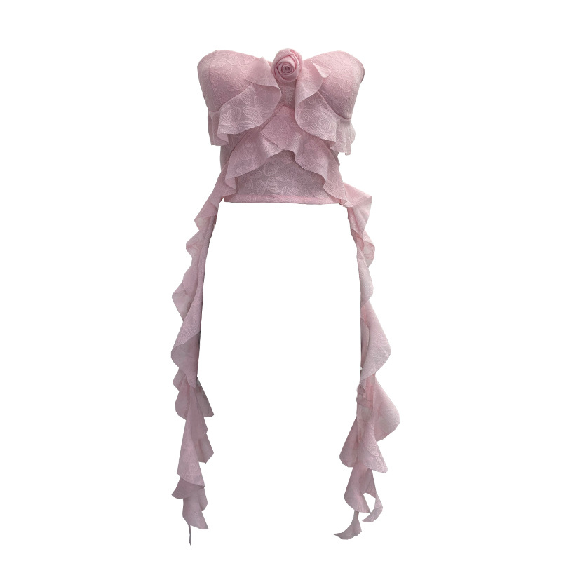 Uveng Real Shooting Lotus Leaf Side Flowers Sleeveless Chest Pads With Chest Vest Pure Desire Style Short-Term Wear 8852