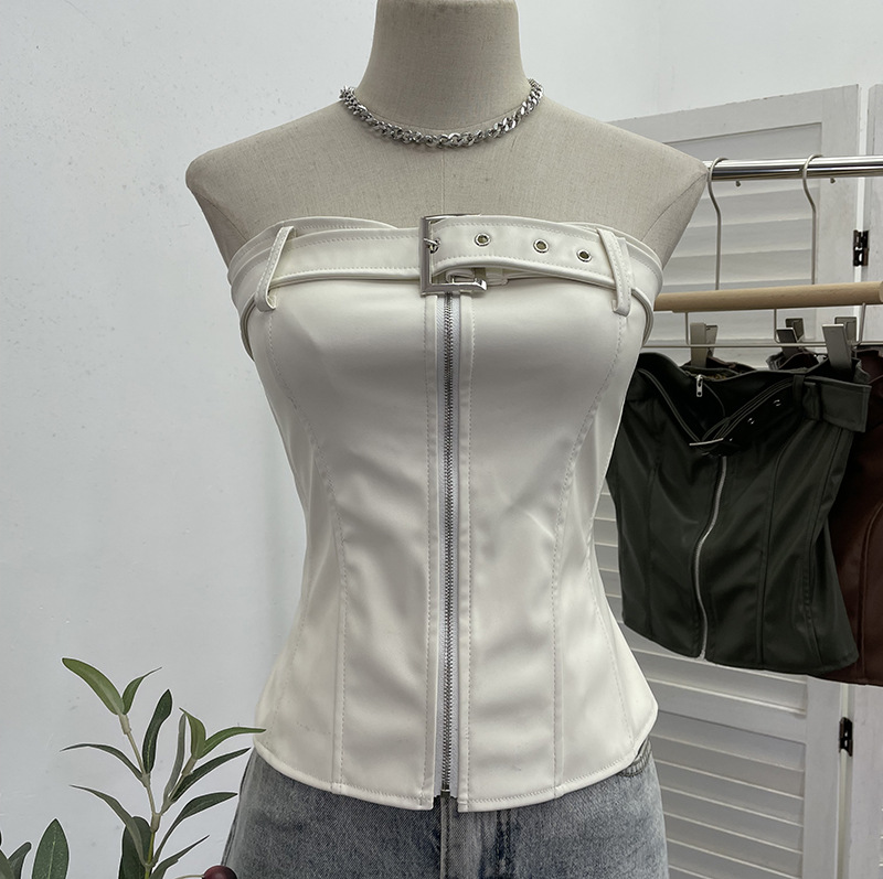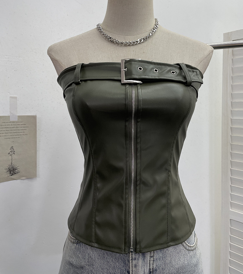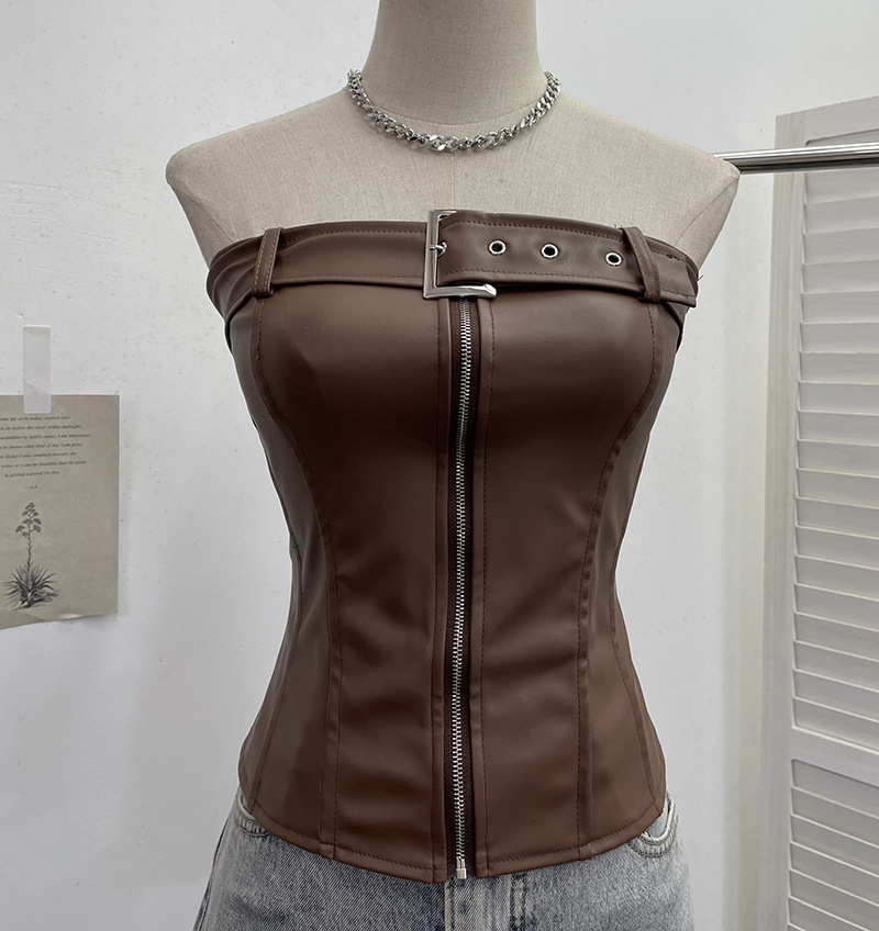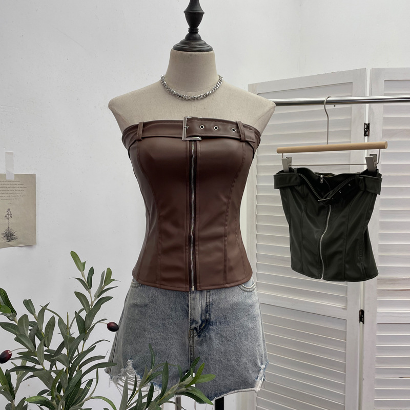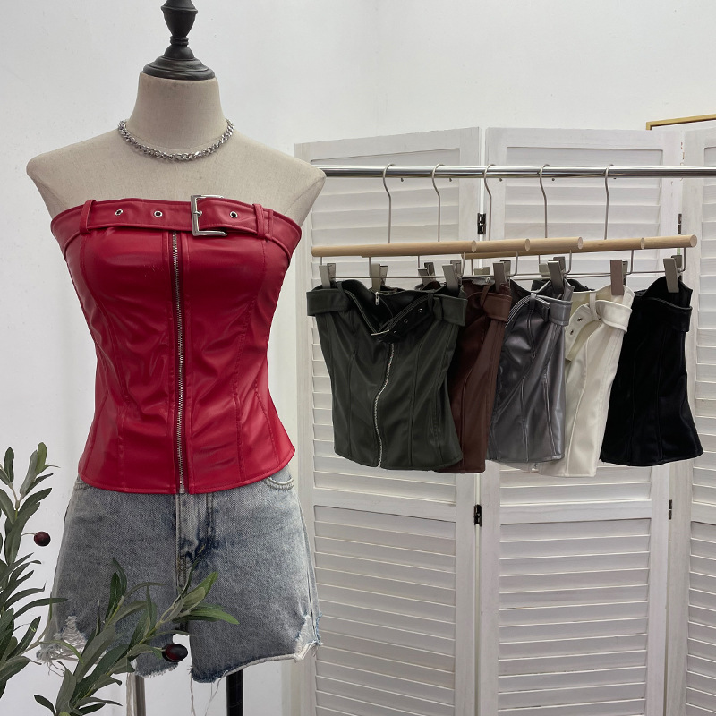 Uveng Real Shooting Spice Girls High-End Pu Leather Tector Locomotive Wind Wrapped Bra Vest Sleeveless Top Tide 1986