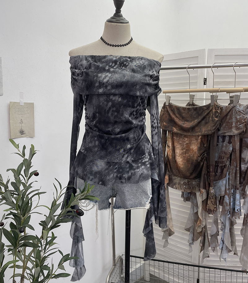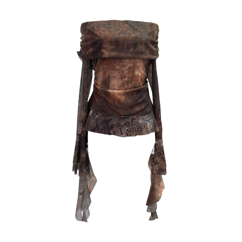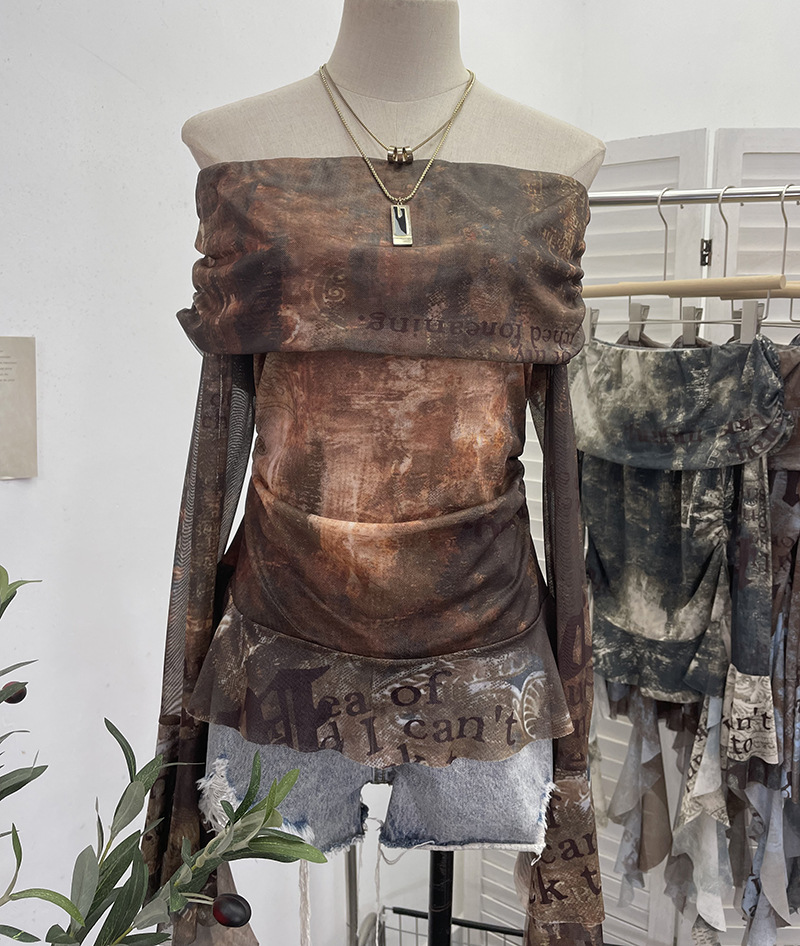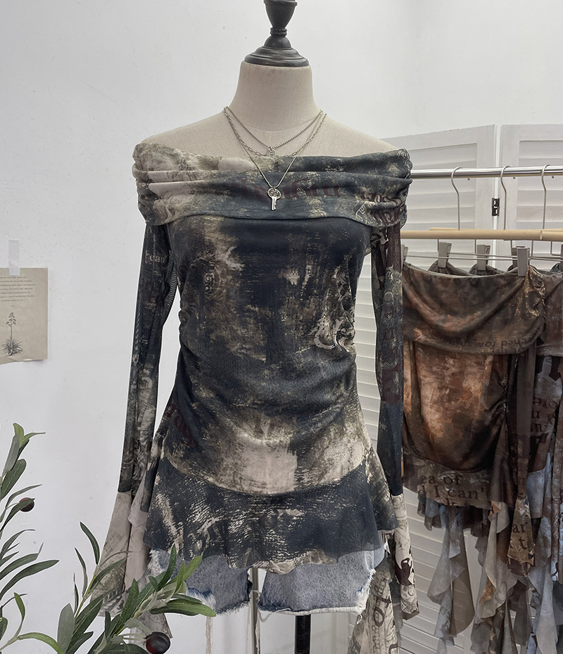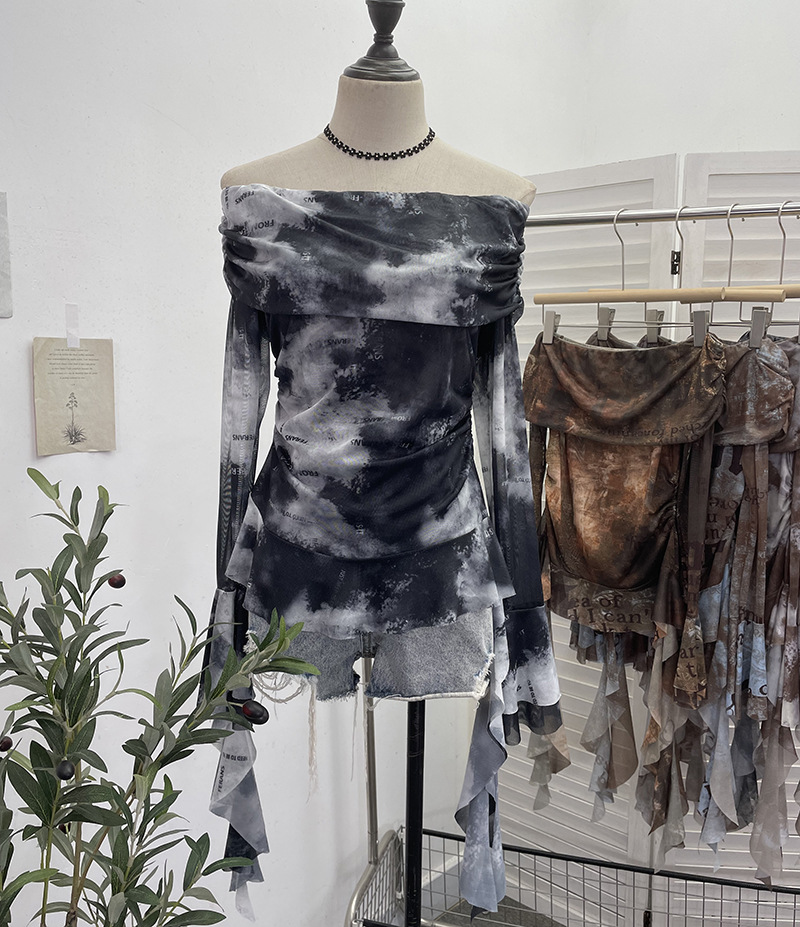 Uveng Real Shot Shoulder Strap Tie Dyed Net Shawl Shirt T-Shirt T-Shirt T-Shirt Design Folded Long-Sleeved T-Shirt 8003