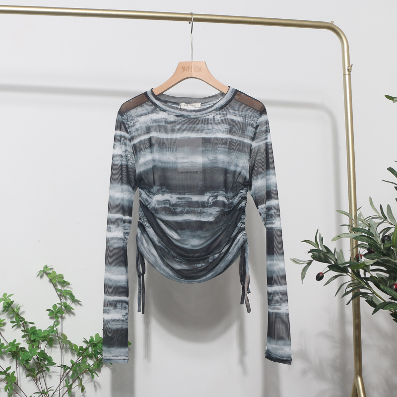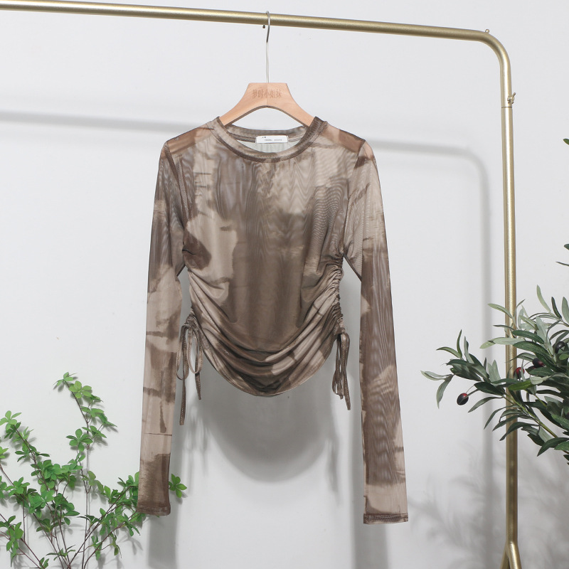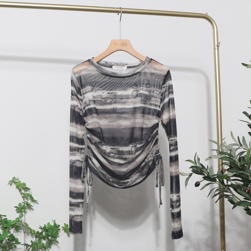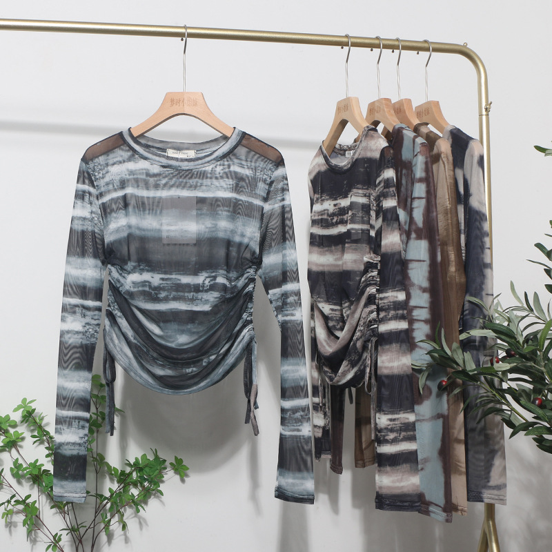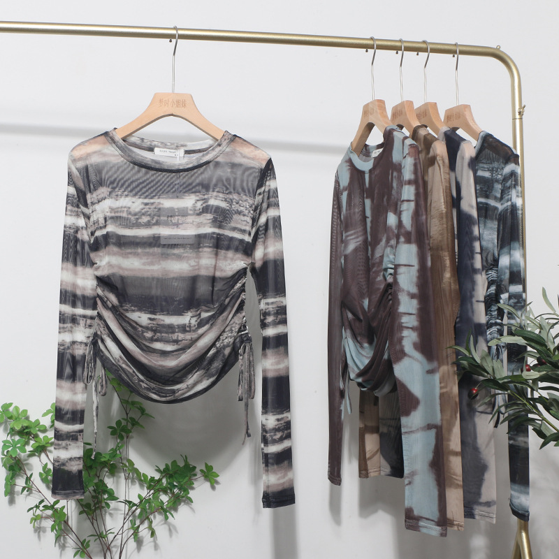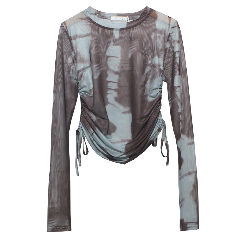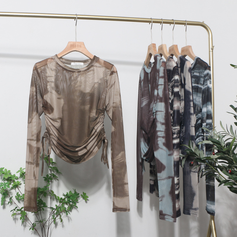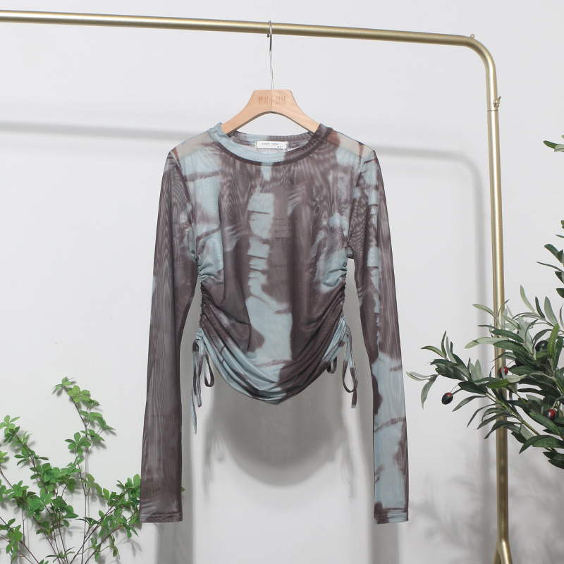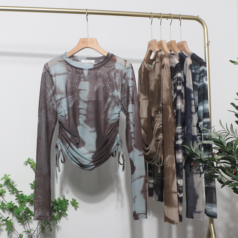 Uveng Round Collar Tie-Dye-Print Slim Long-Sleeved T-Shirt T-Shirt T-Shirt With Sunscreen 8159