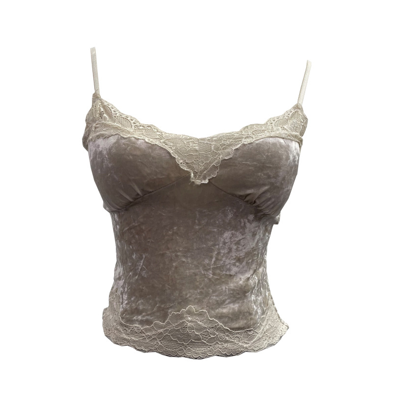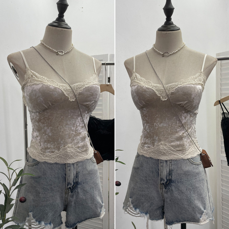 Uveng Set Up The Coat Series Velvet Lace Lace Sling With Chest Pad Wear Vest Top 9186