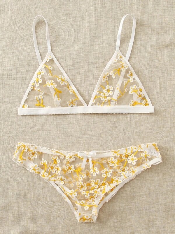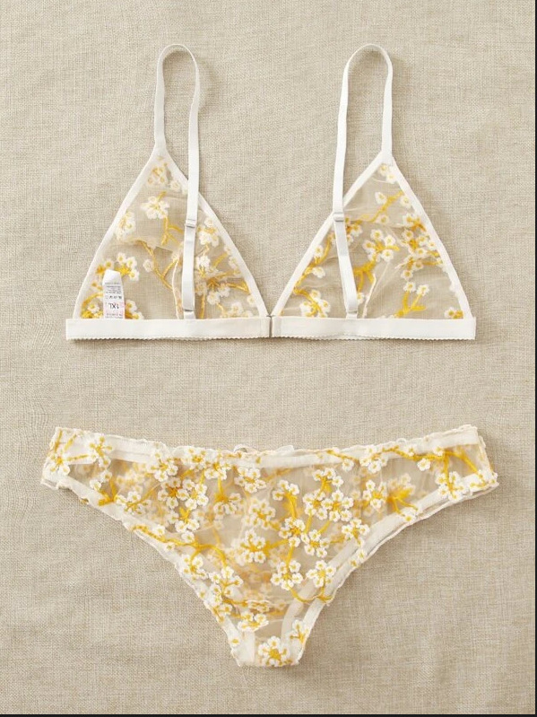 Uveng Sex Lingerie Sexy Girl Yellow Small Broken Flower Bikini Three-Point Set