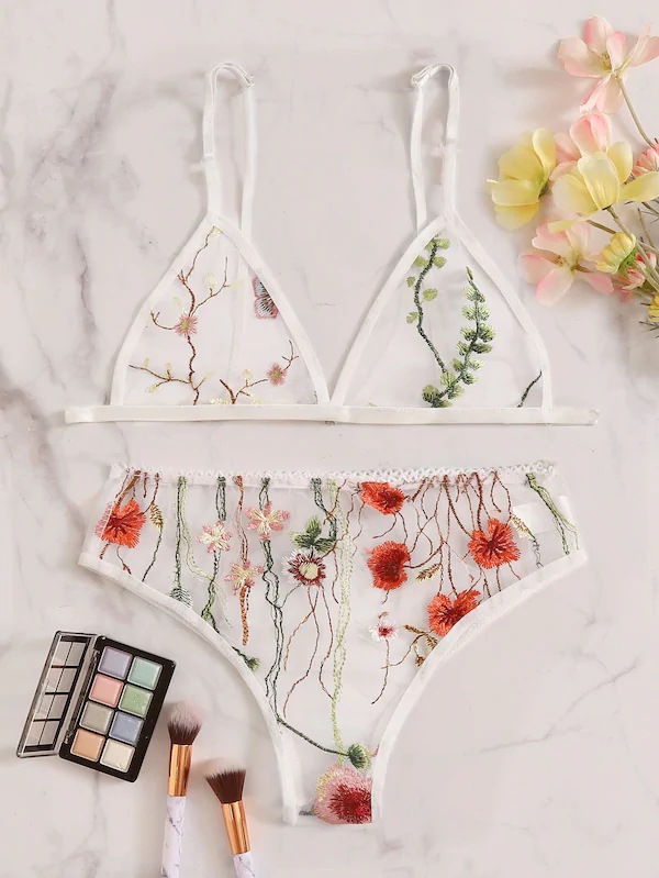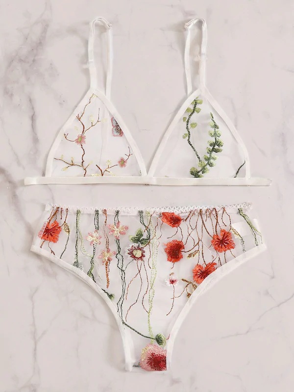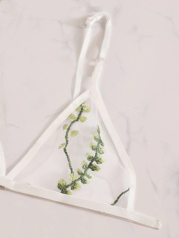 Uveng Sex Lingerie Sexy Women's Lingerie Hollow Print Three-Point Lingerie Set