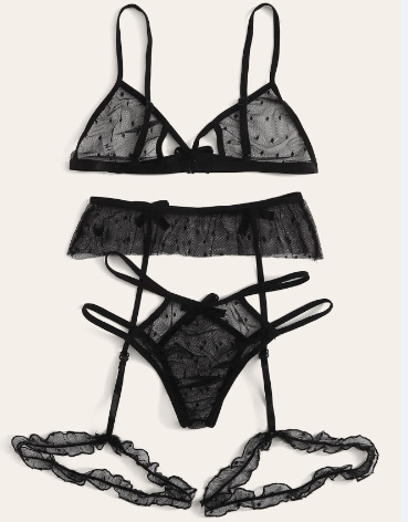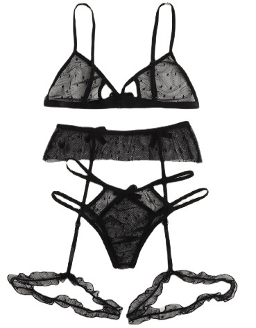 Uveng Sex Net Yarn Three-Point Set Sexy Mesh Yarn Perspective Bra Panties Garter Three-Piece Set 1500