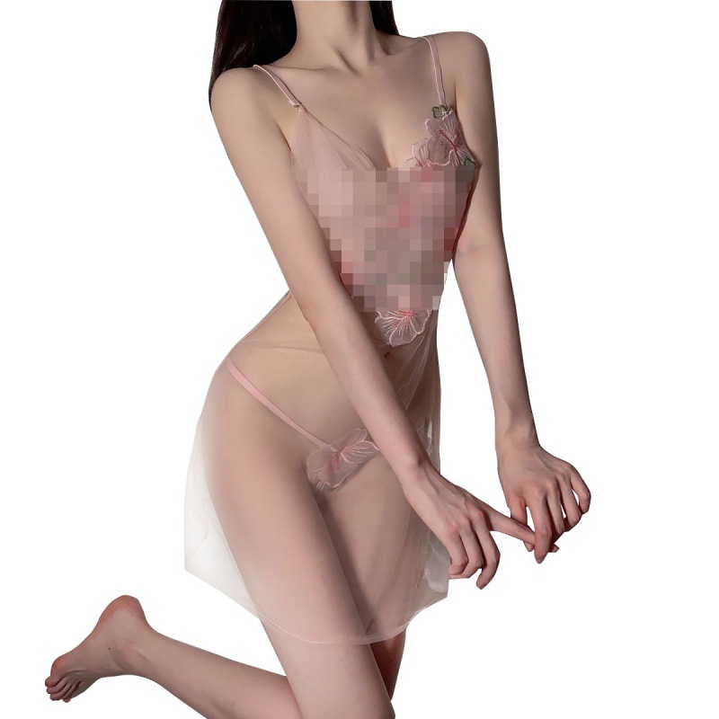 Uveng Sexy Perspective Tulle Lingerie Romantic Peach Flower Yarn Slings Sling Suit Pajamas Pajamas A186