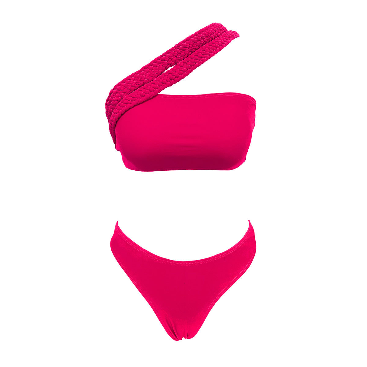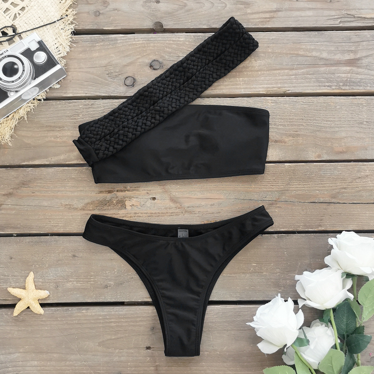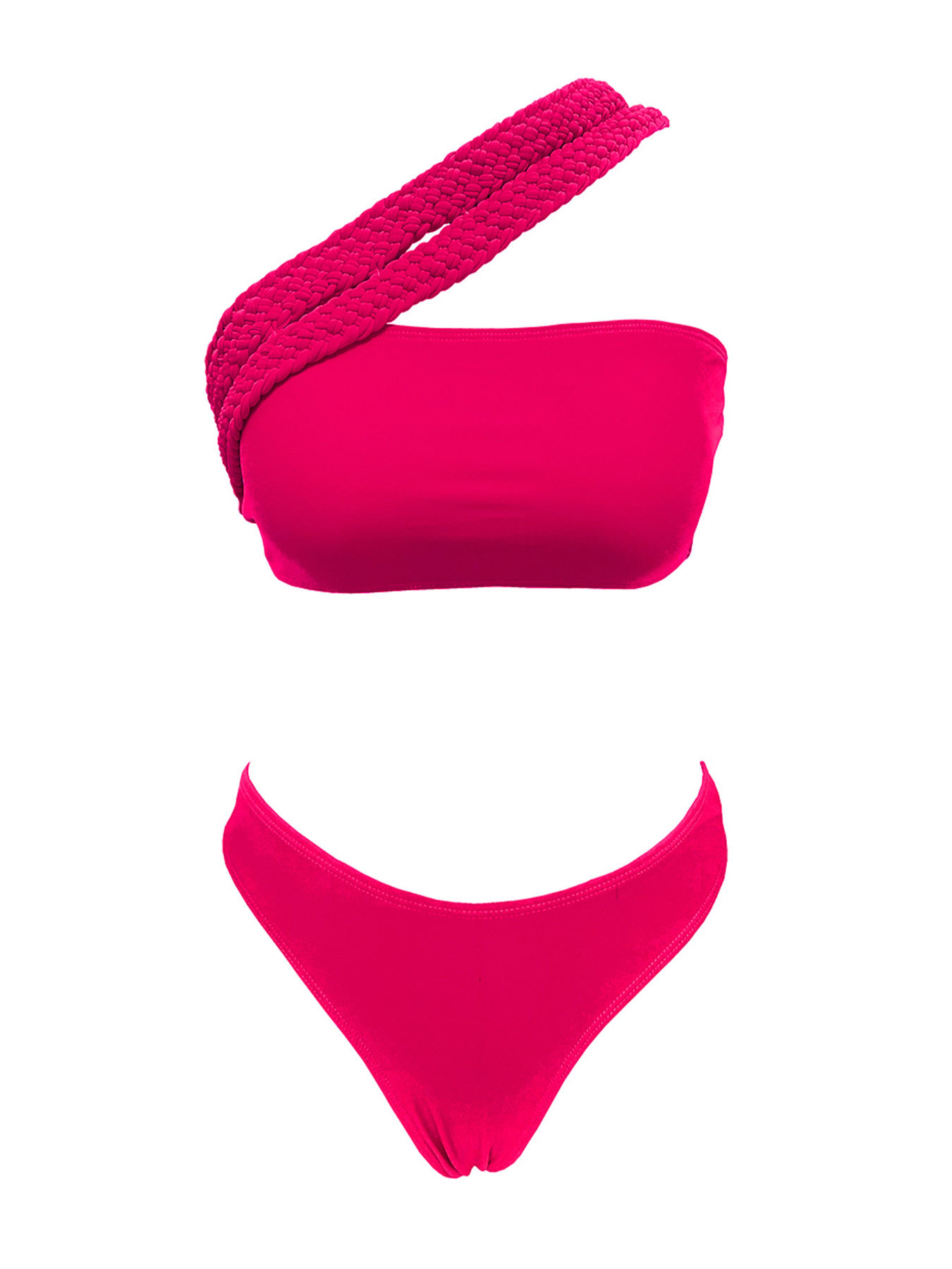 Uveng Single-Shoulder Rope Strap-Meared Solid Color Split Swimsuit Woman 2025 New Bikini