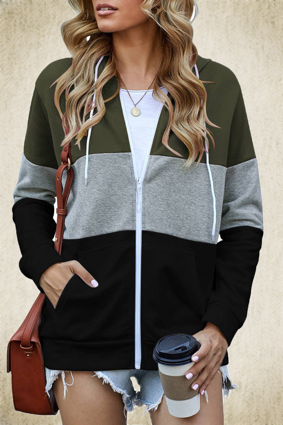 Long Sleeve Color Hooded Sweatshirt Women's Cotton Blend Zipper Pocket Cardigan Jacket