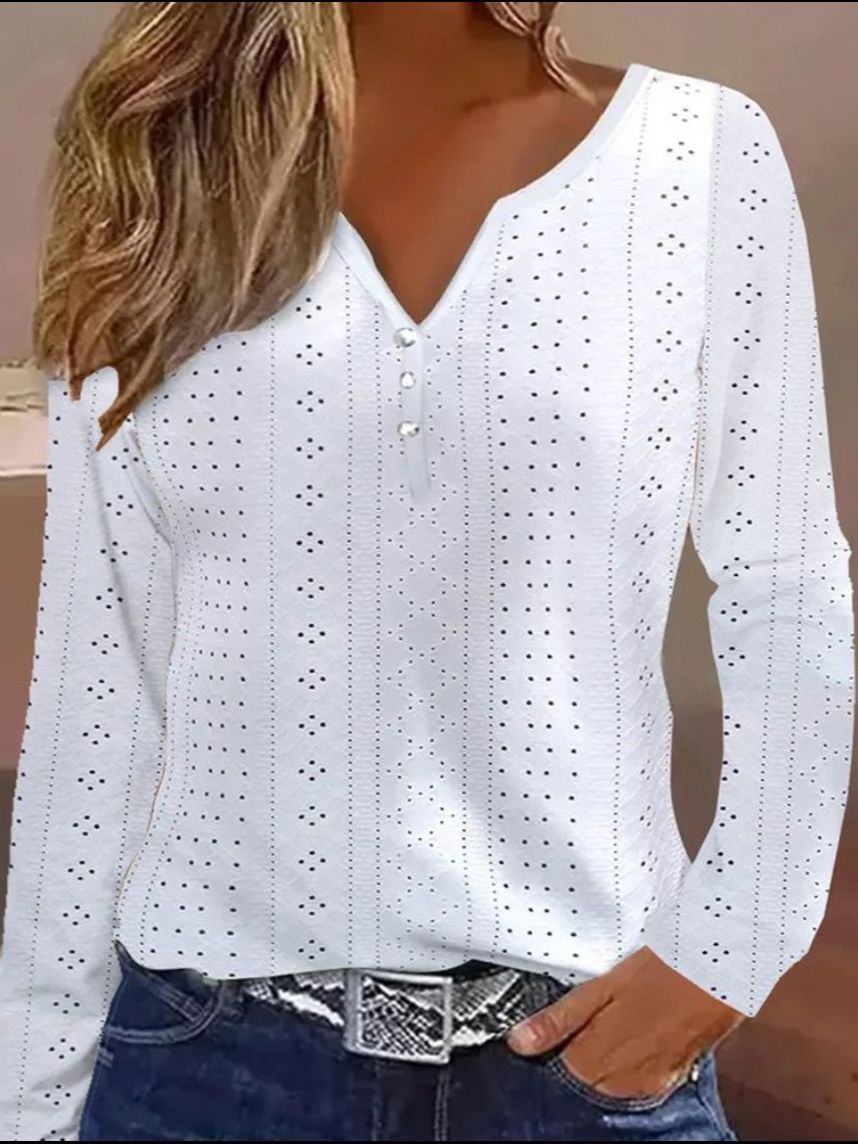 Uveng Sleeve Hollow Solid Color Stitching Shirt Blouses