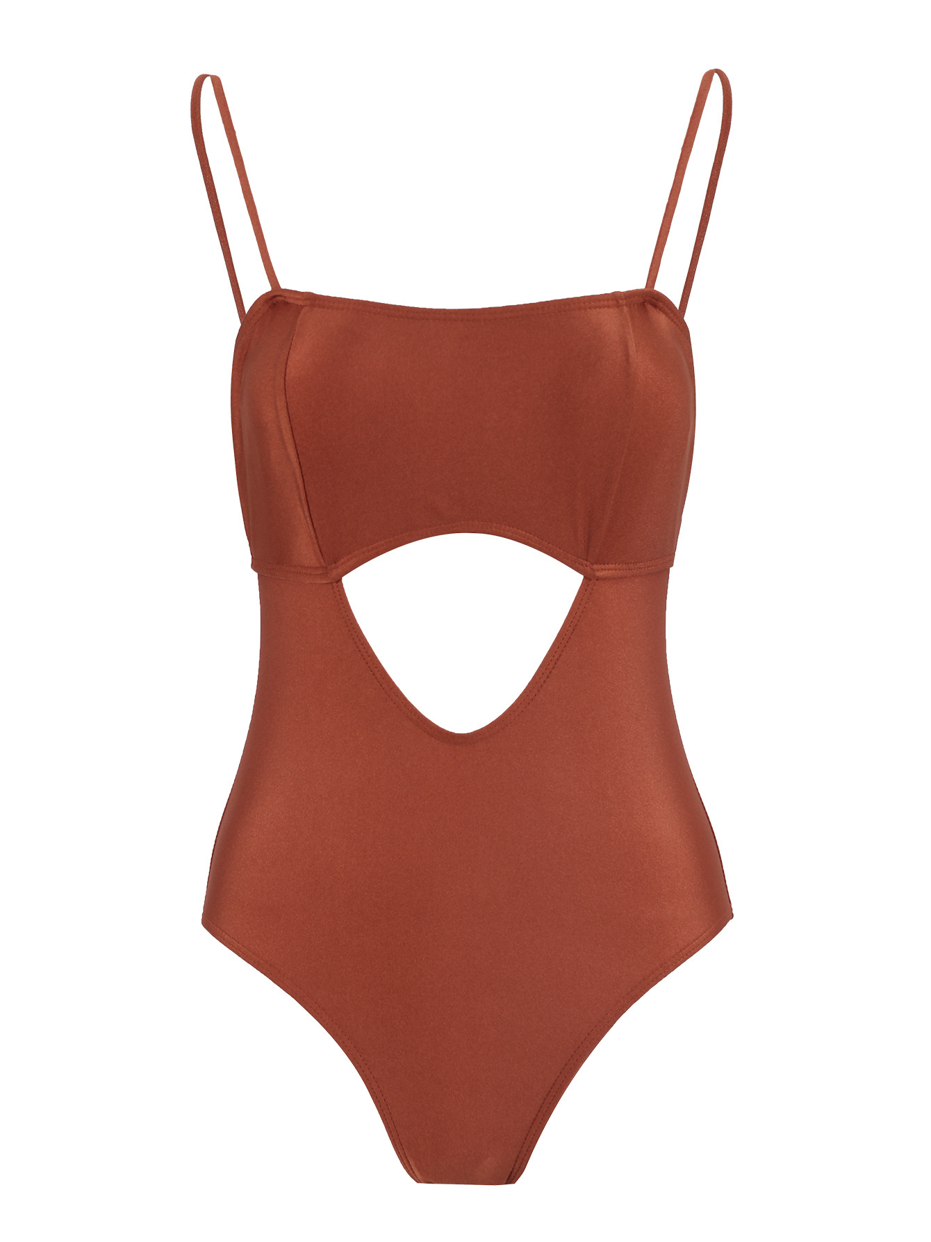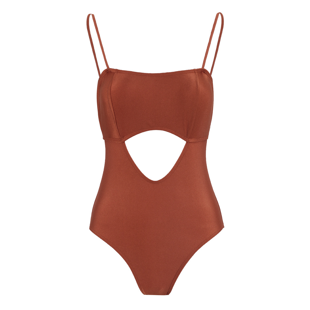 Uveng Solid-Color One-Piece Swimsuit Women 2025 New Hollow Swimsuit Two-Set Export Swimsuit