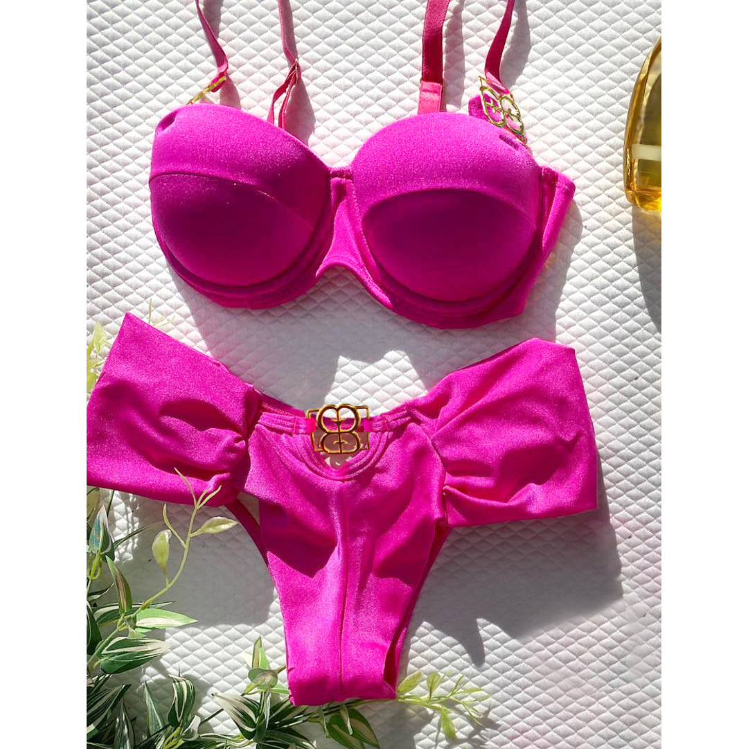 Uveng Solid Color Slings With Braided Hard-Packed Swimsuit Women 2025 New Bikini