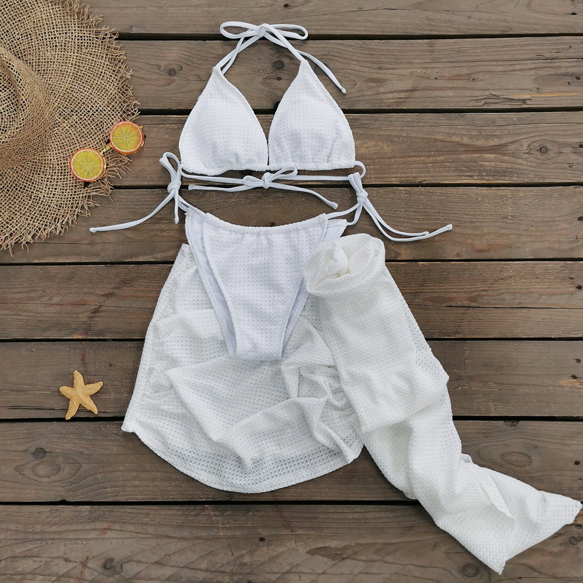 Uveng Solid Color Strap Sexy Three-Point Bikini Three-Piece Set Split Swimsuit Woman 2025 New Bikini