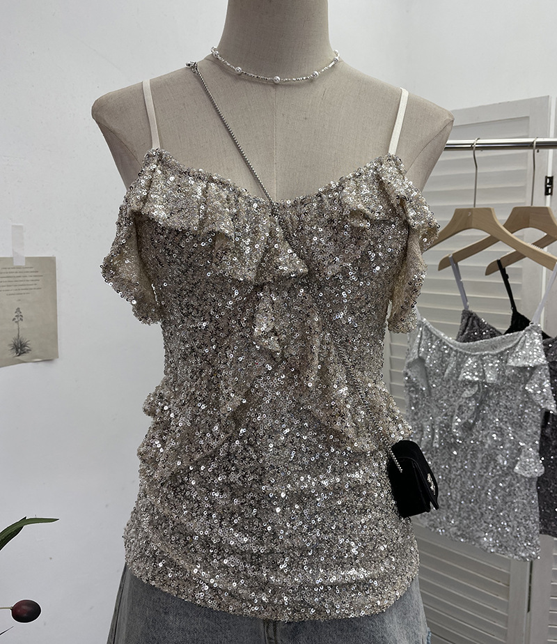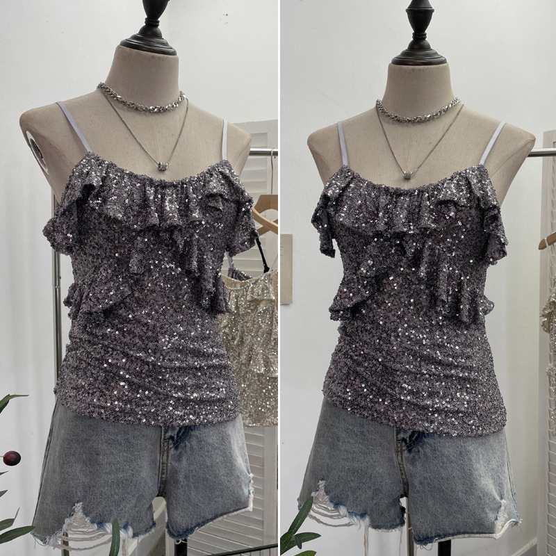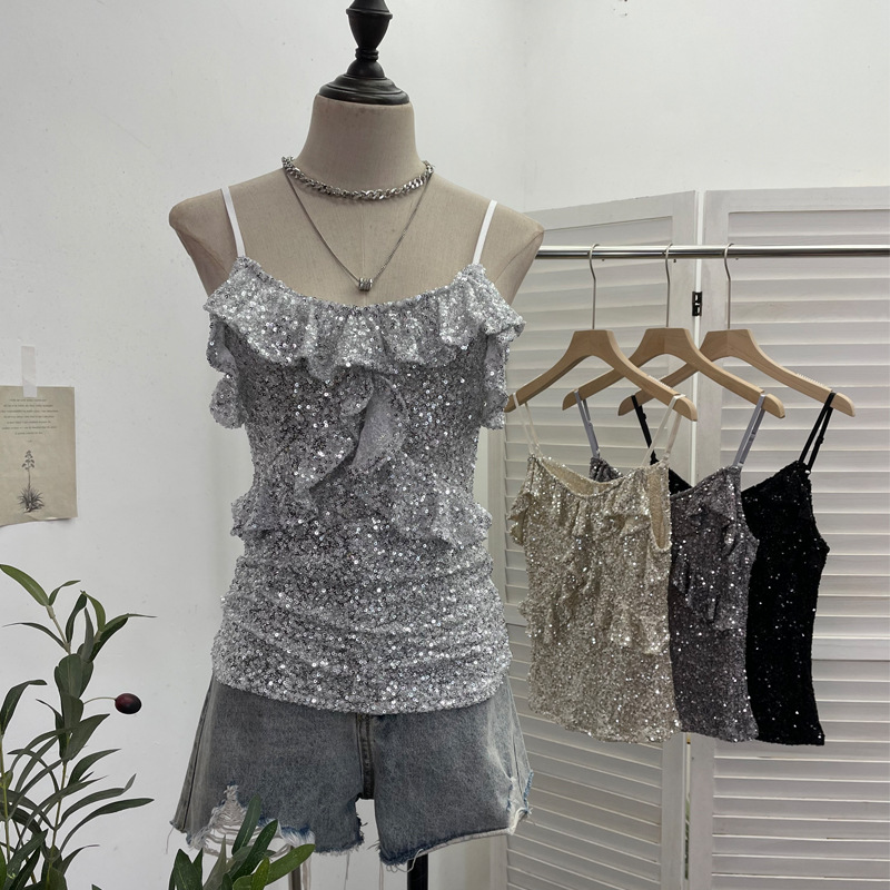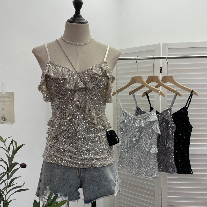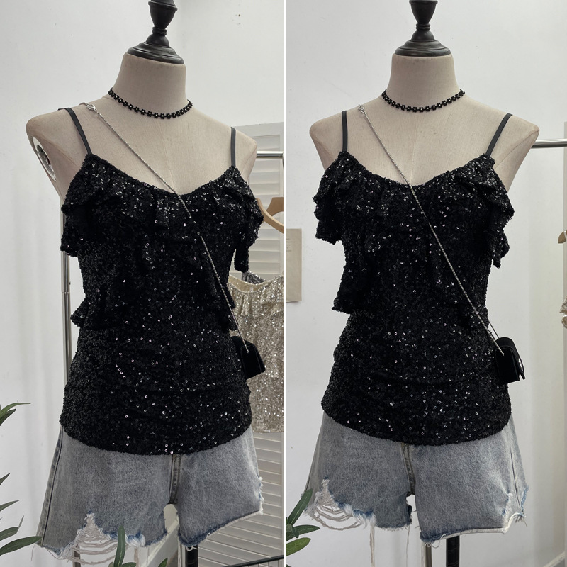 Uveng Solid Shot Of The Leek Wood Ear Design Feeling With A Bullet Elastic Sling Sling Vest T-Shirted Babes Sleeveless Top Lady 9069