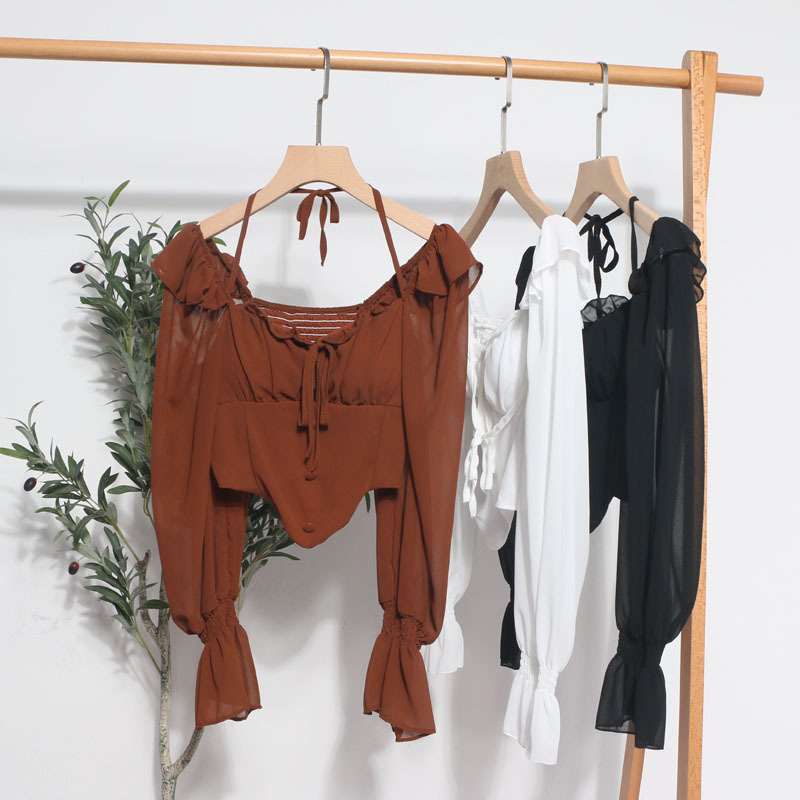 Uveng Spice Girls Shoulder-Mounted Neck With Long-Sleeved Chindal Wooden Ear-Deared Shirt Short With Chest Cushion Top 8873