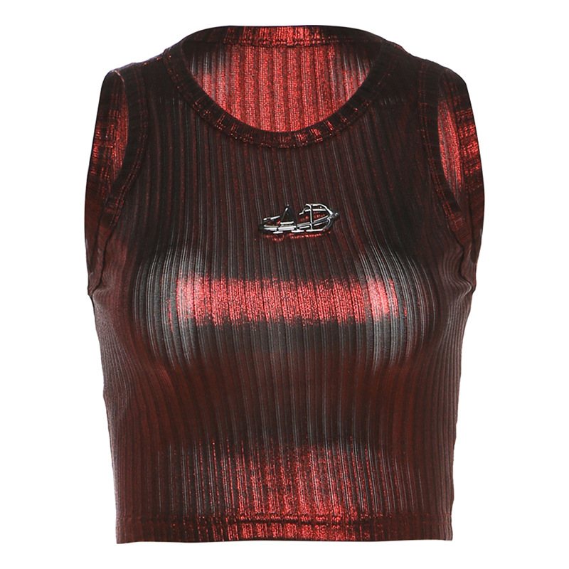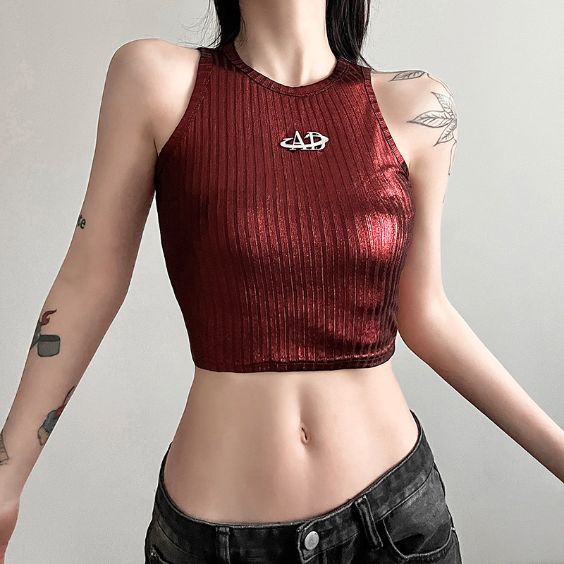 Uveng Spring 2024 New Women's Sexy Hottie Vertical Stripe Sleeve Sling Sling Small Vest