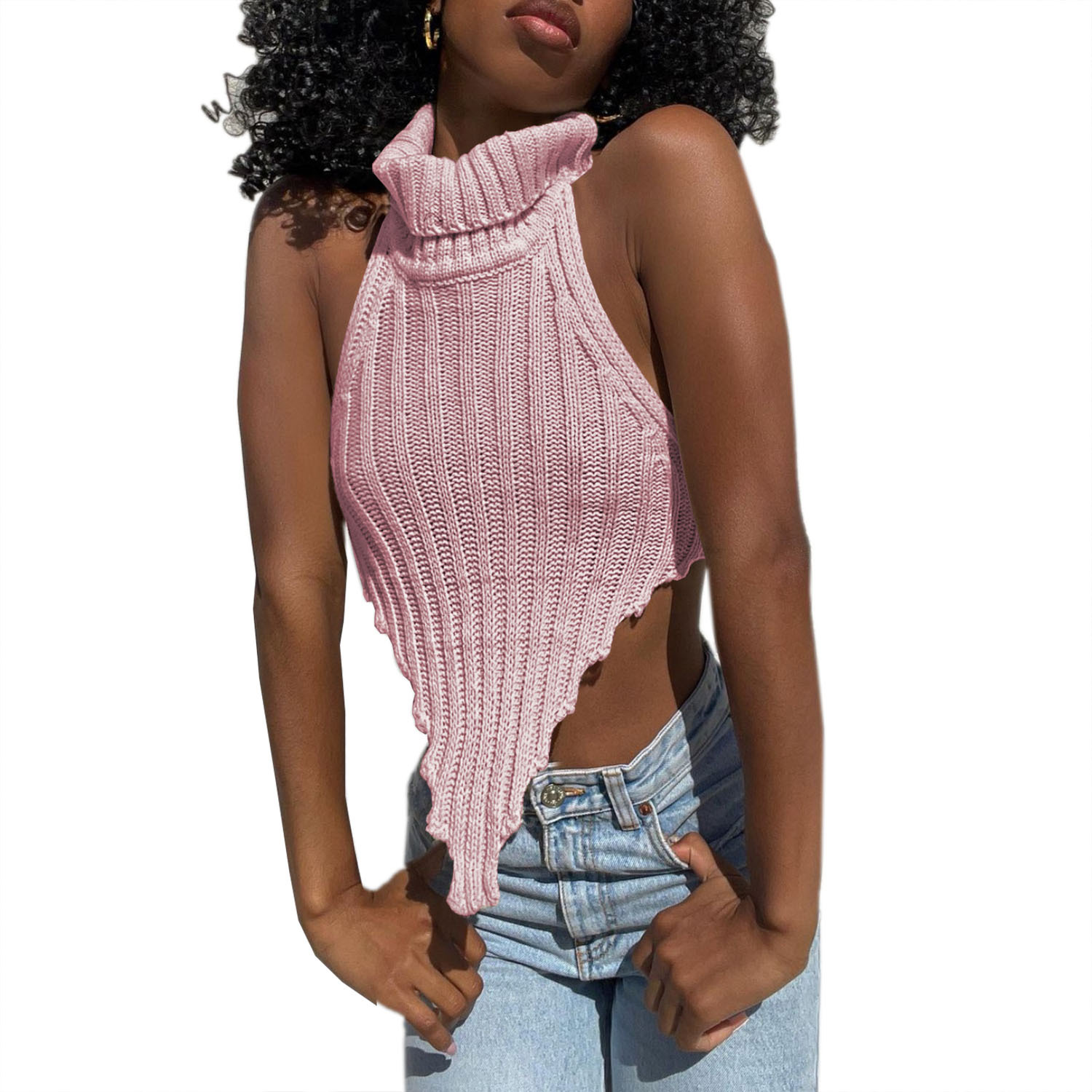 Uveng Spring And Summer New Explosion High-Collar Irregular Sexy Back Hair Weaving Small Vest